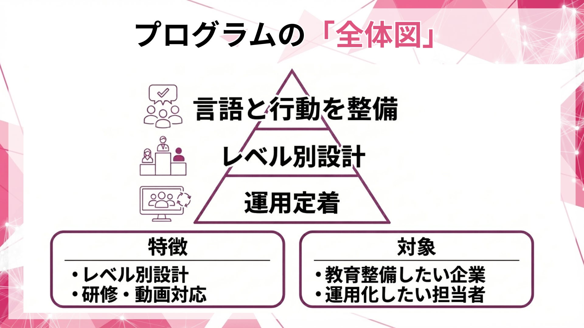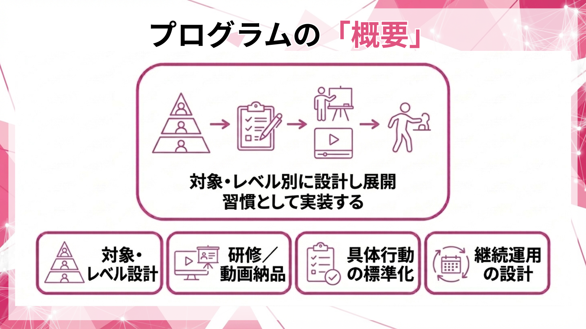 プログラム概要(研修/動画納品×レベル別設計)