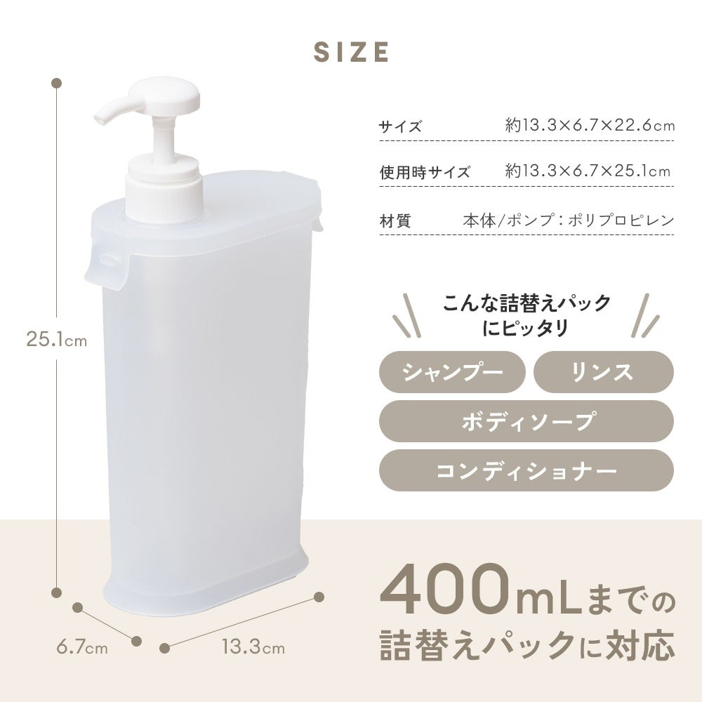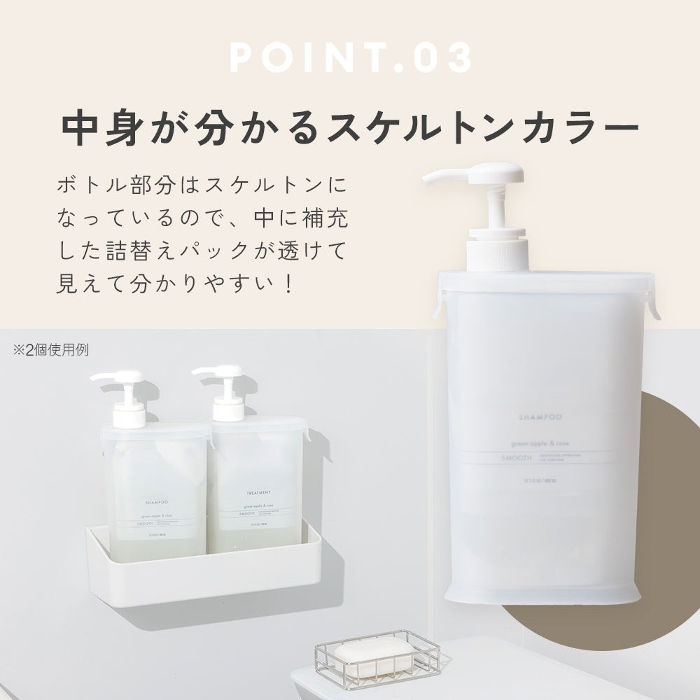 ・詰替えパックごとスッポリ!シャンプーなどの詰替えに便利なディスペンサーです。