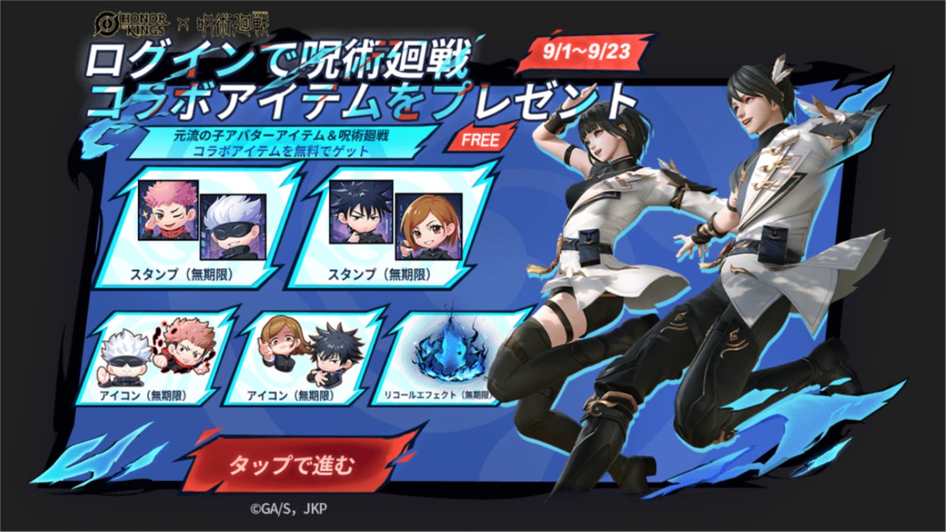 世界で最もプレイされている MOBA ゲーム*1『Honor of Kings(オナー・オブ・キングス)』は、大人気TVアニメ『呪術廻戦』との期間限定コラボレーションイベントを、2025年9月1日(月)より開催いたします。