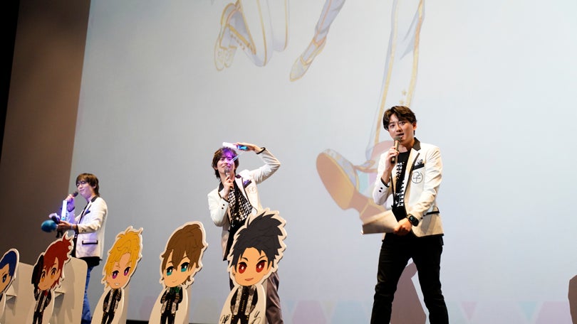 続く、グッズ紹介では「DearDream」「KUROFUNE」の新規描き下ろしイラストとして、初のアニメイラスト化された「スーパーノヴァ」コーデの及川慎、沢村千弦、黒石勇人が先行公開され、会場は大きな歓声に包まれました。さらに、アニメ2期『ドリフェス!R』の応援上映会が夏に開催されることが発表され、ファンの期待が高まりました。