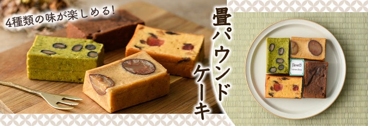 日本人がほっとする、くつろぎを与える畳をイメージした「畳パウンドケーキ」。