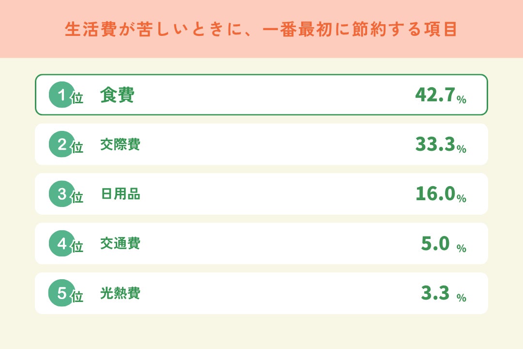 Earth hacksがLINE ヤフー株式会社、株式会社seamint.と共同で設立した「デカボLab」においてZ世代を対象に実施した調査の結果、Z世代の約6割が「今、生活費のやり繰りが苦しい状況」と回答しており、さらに生活費節約のためにまず初めに削減するのは「食費」であることが明らかになりました。