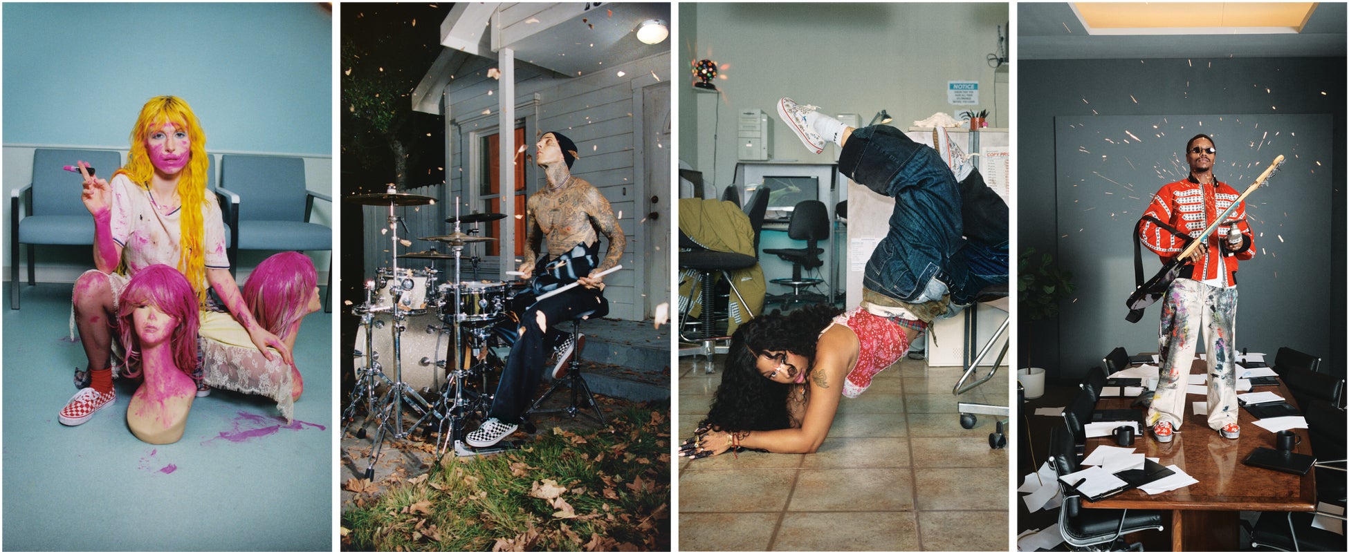 キャストには、それぞれのシーンで独自の存在感を放つ6人が集結。いずれもグラミー賞受賞歴を持つシンガー・ソングライター SZA、ポップ・パンク・バンド「Paramore」のボーカル ヘイリー・ウィリアムズ、ハードコア・バンド「Turnstile」のベーシスト フランツ・ライオンズ。さらにパンク・バンド「Blink-182」のドラマー トラヴィス・バーカー、Vans Skateboardingチームライダーのリジー・アーマントとT-ファンクが参加。共通するのは、自分らしく騒がしく生きるというマインド。