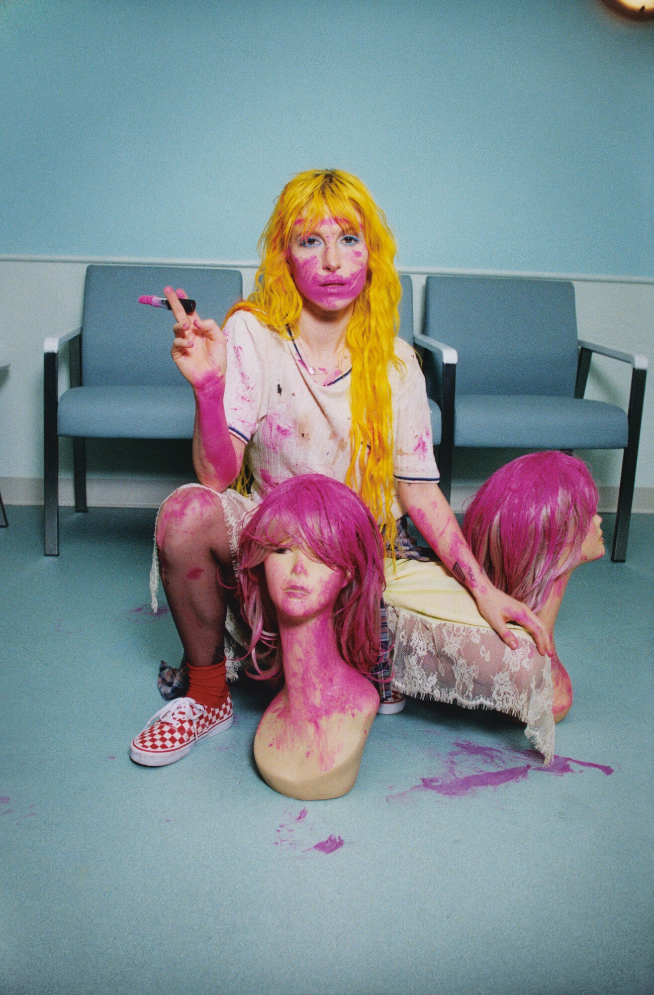 ビジュアルのストーリーでは、退屈で窮屈な日常空間にキャストたちが突如として現れます。待合室にヘイリー・ウィリアムズ、静かな郊外にトラヴィス・バーカー、ネットカフェにSZA、会議室にフランツ・ライオンズ — 創造性と抑圧のコントラストの中で、静かなシューズが、騒がしい人生を彩ります。
