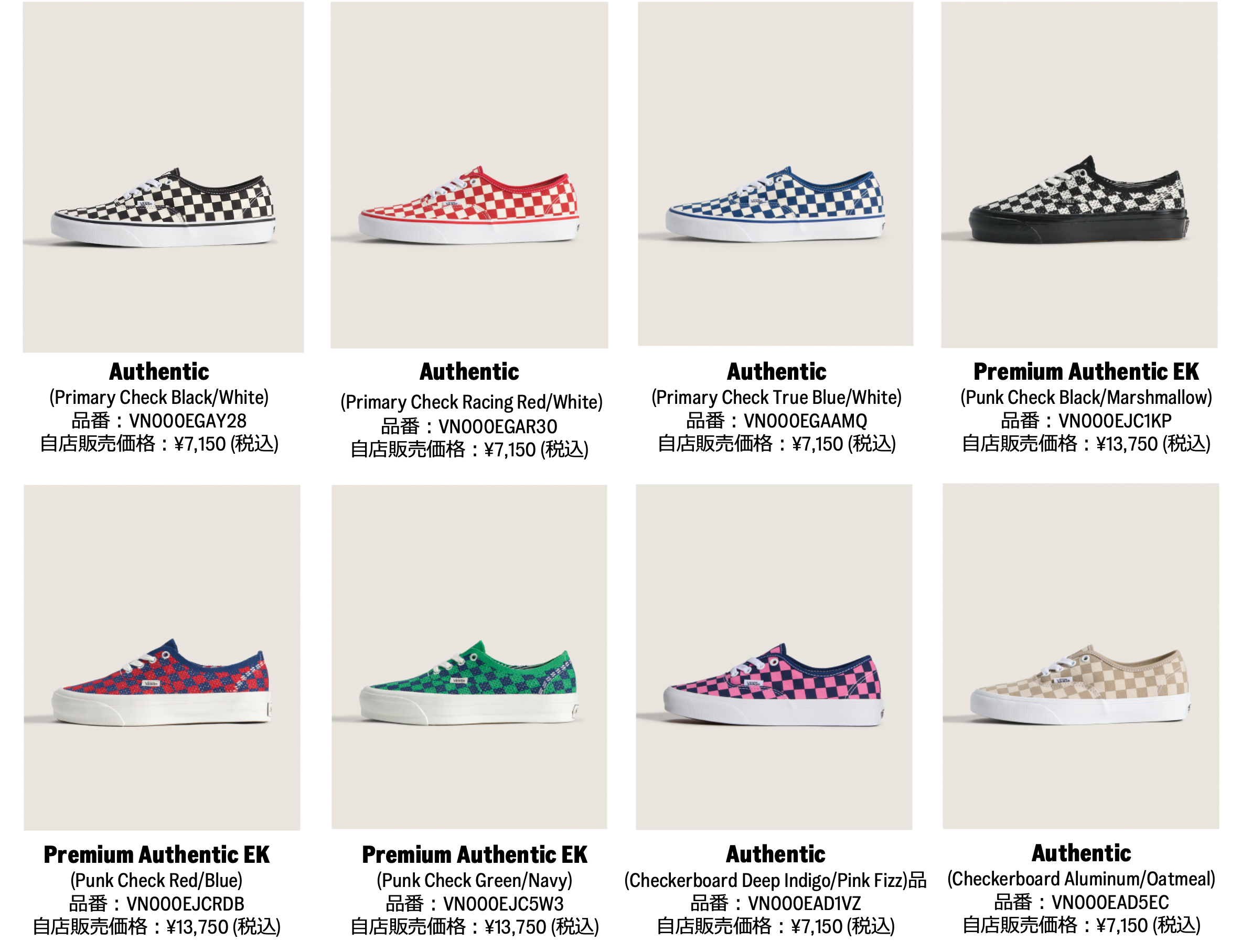 「Checkerboard Collection」は3月13日 (金) より、「California Heritage Collection」は4月2日 (木) より、Vans公式オンラインストア、Vans Store Shibuya PARCOをはじめとするVans Store各店、Vans正規取扱店で展開いたします。