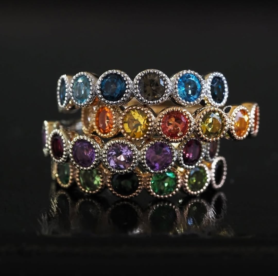 『ミルゴシック』は、ゴシック建築の壮麗さを纏うコレクション。『ミルシェノン』は、古典的なミル留め技法に幸せの象徴を込めて。『サンクルール』は、光と影が織りなす色彩の美しさを表現。いま話題の真珠をあしらったものなど、それぞれが独自の個性と物語を持ち、あなたの指先を彩ります。