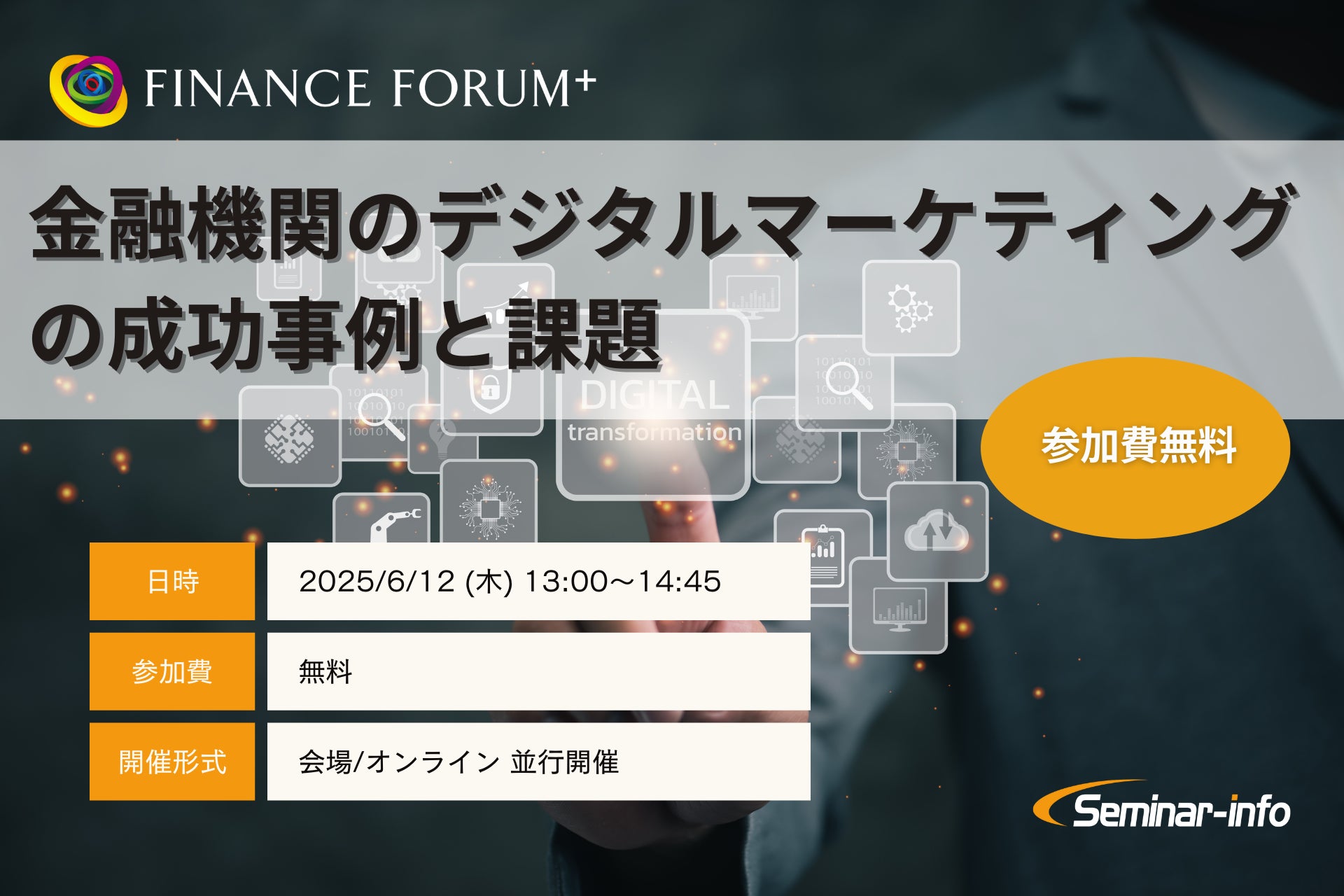株式会社セミナーインフォ(本社:東京都千代田区 代表:小西 亘)は、2025年6月12日(木)にFINANCE FORUM⁺「金融機関のデジタルマーケティングの成功事例と課題」を開催いたします。