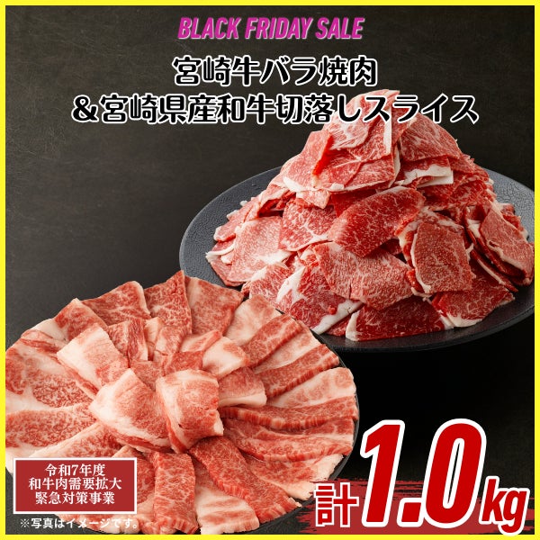 宮崎牛バラ焼肉&和牛切落しスライス計1kg