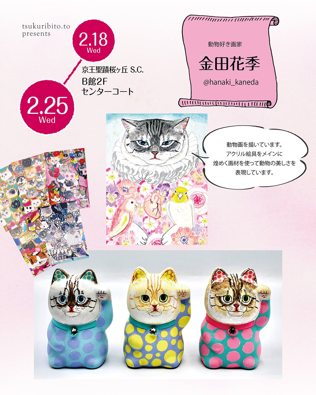 第2部は京王アートマン初登場の作家さん、猫もとろけるあんま棒と台湾雑貨の「SANN」さん、動物画家「金田花季」さん、メキシコを愛するイラストレーター「fumikoten」さんが加わります!