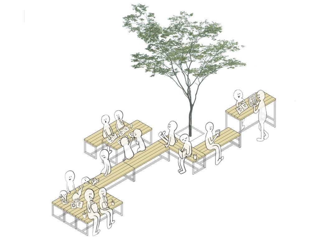 MUJI×UR共同開発パーツのストリートファニチャー「つながるベンチ」イメージ