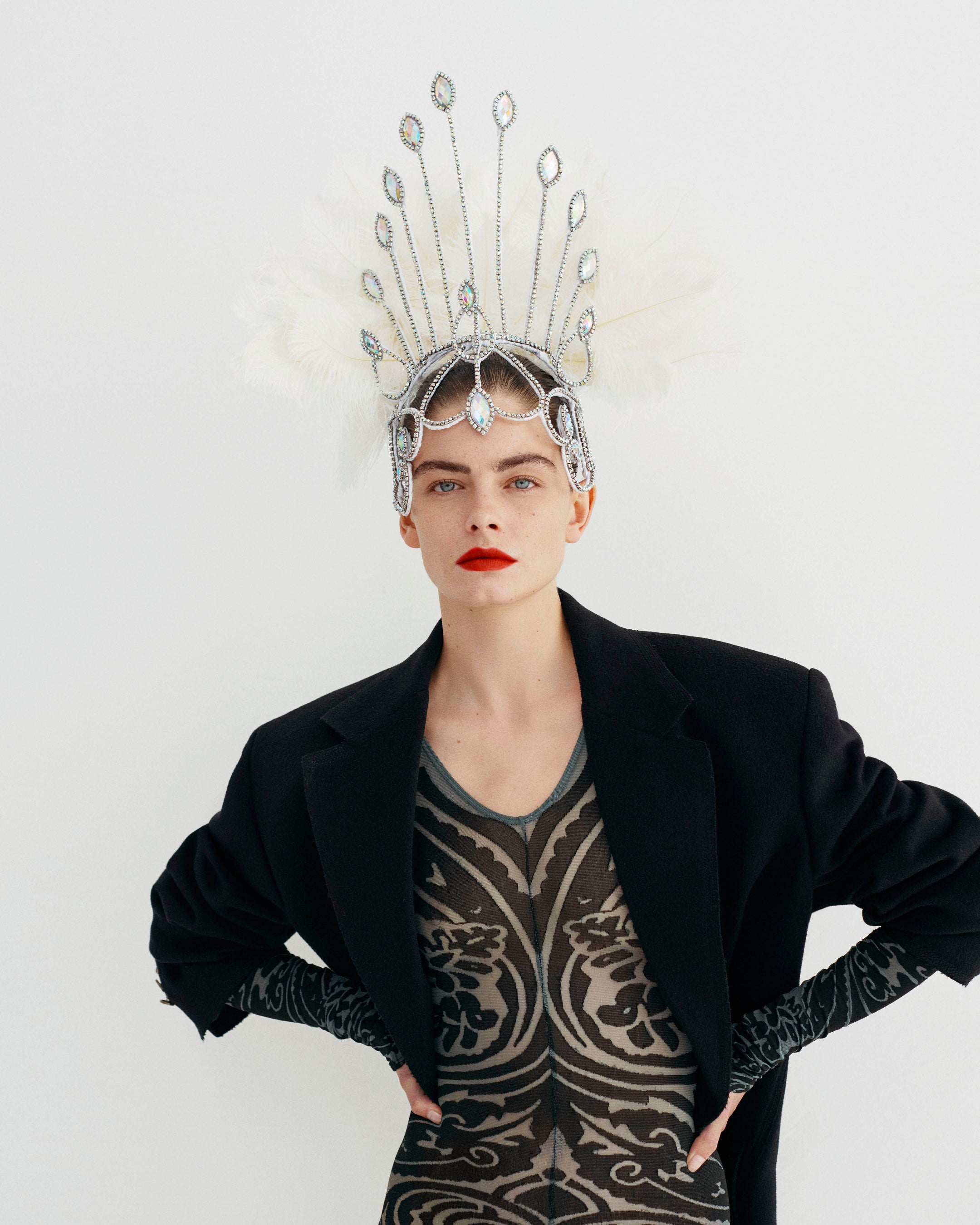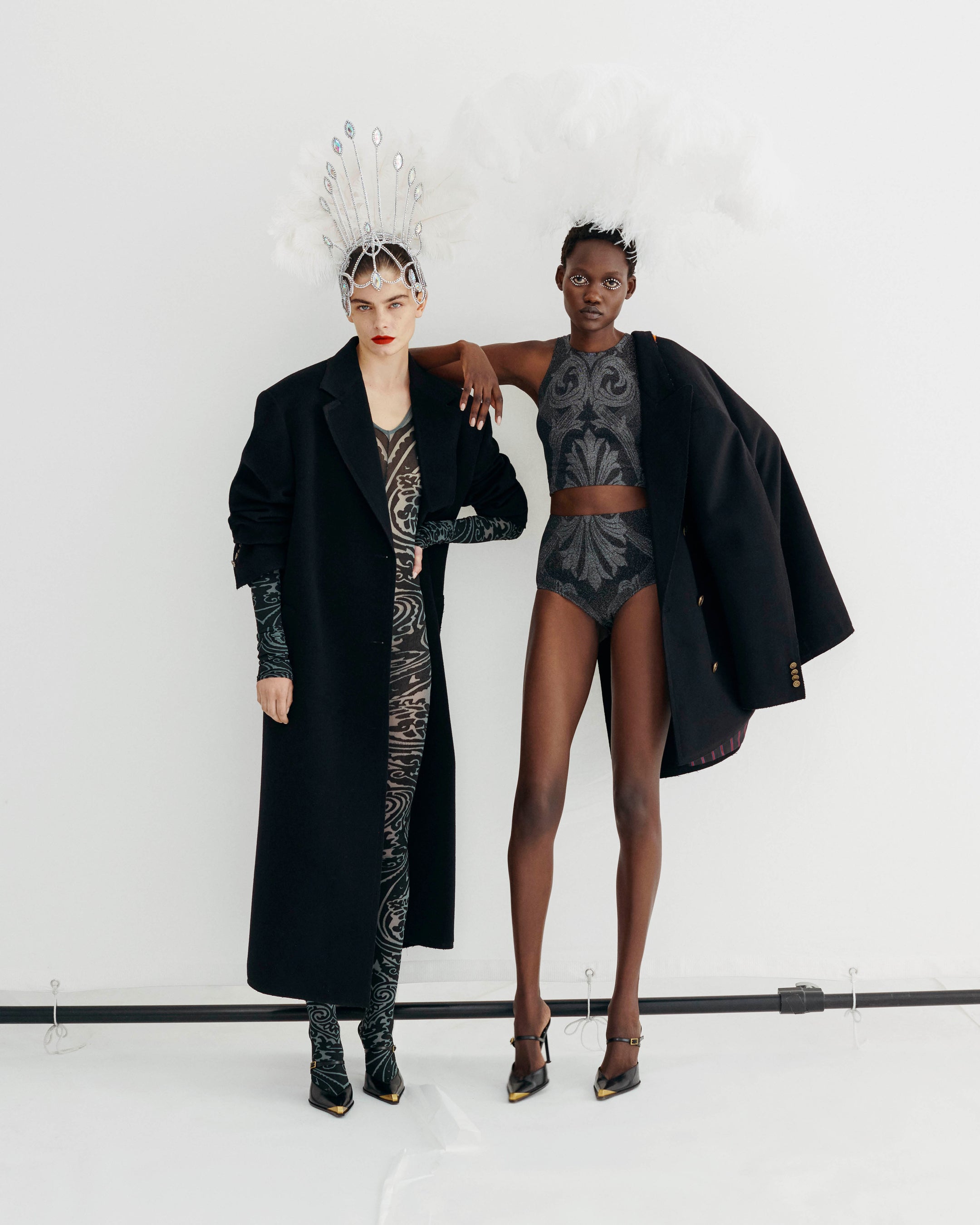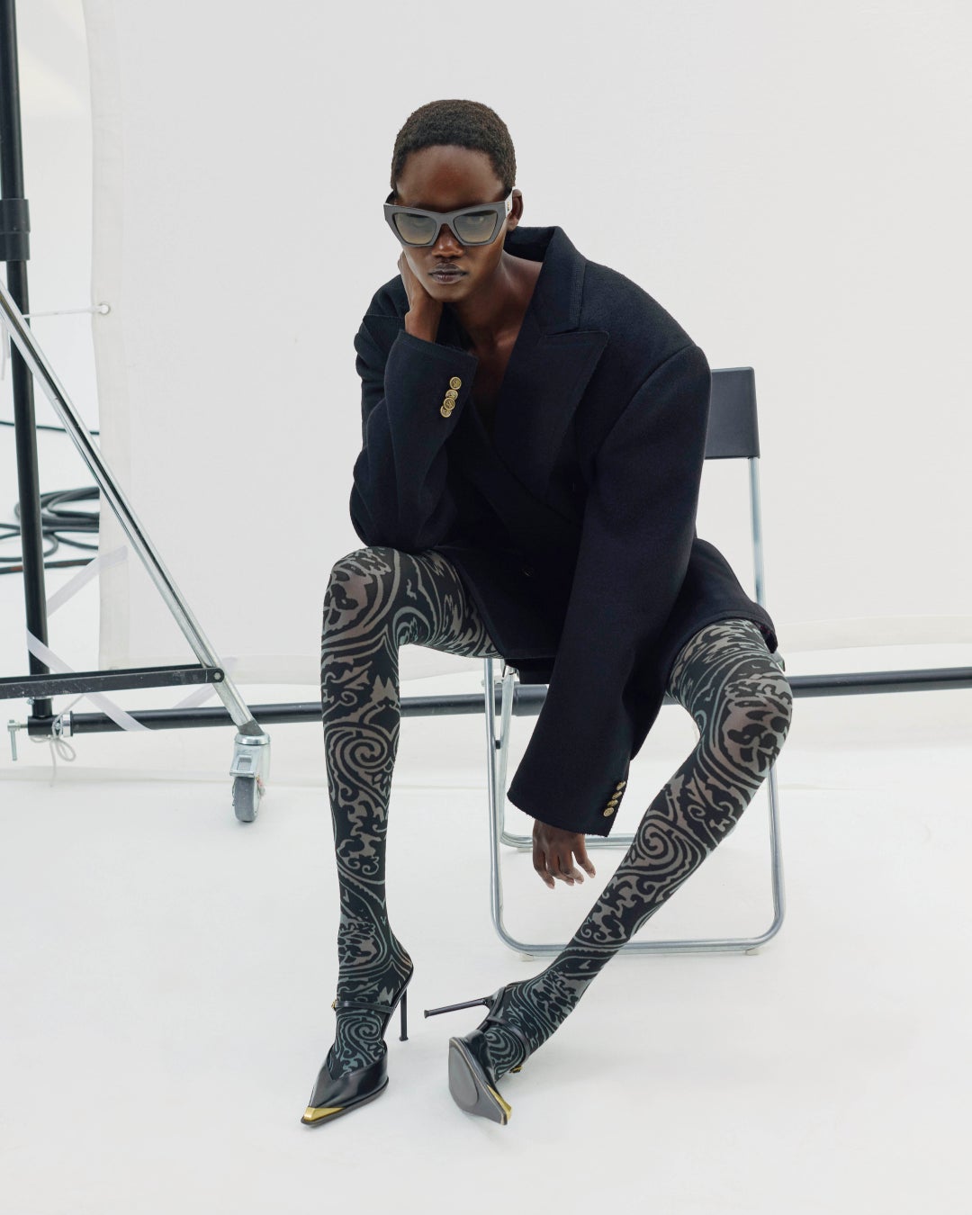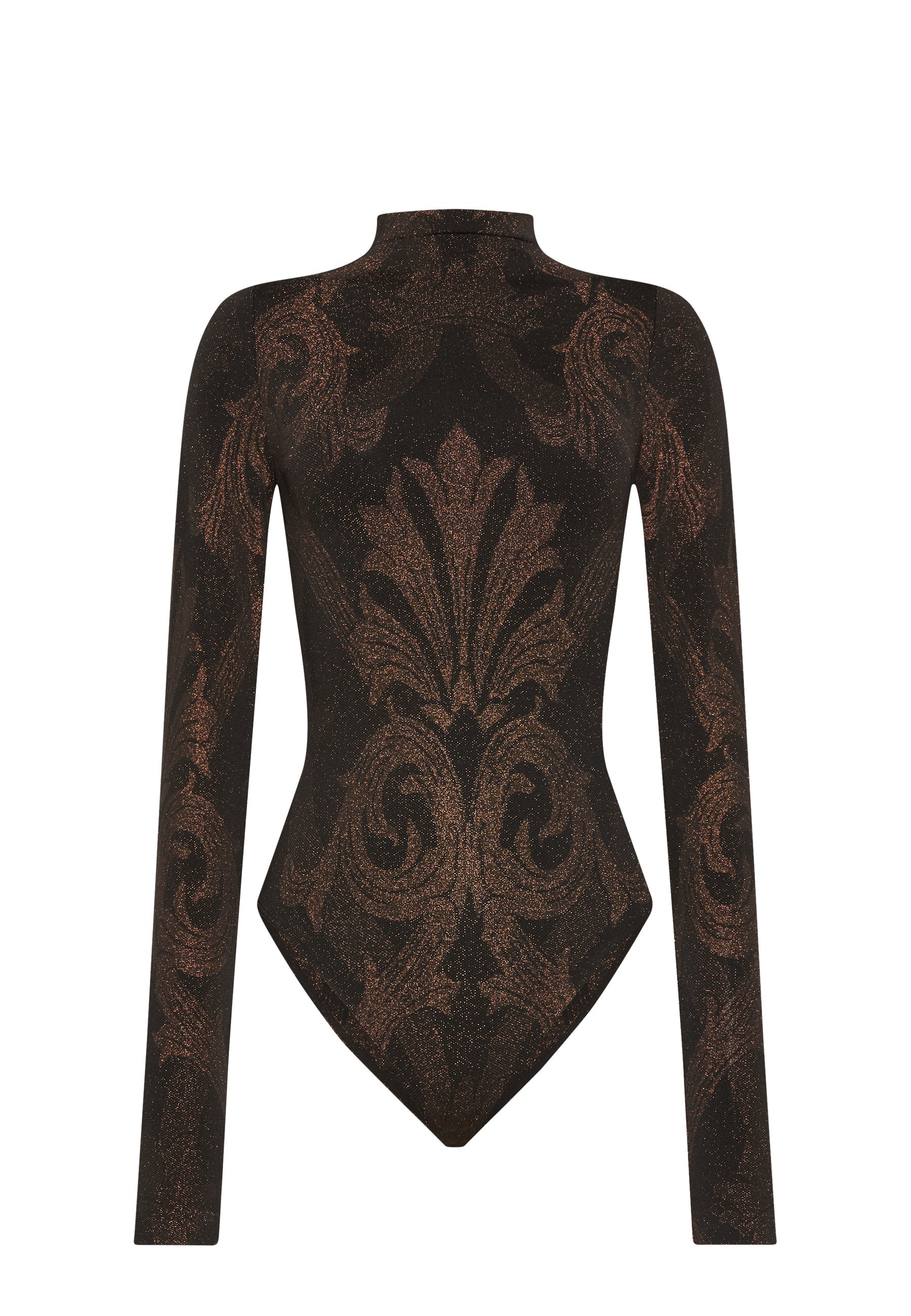 シアーで伸縮性のあるシルエットに新たにデザインされたエトロの特徴的なパターンは、体の曲線に優しくフィットし、動きに応じて滑らかに変化します。ブランドの豊かな歴史を彷彿とさせる独自のモチーフは、繊細な透け感、メタリックなディテールを施したジャカード、光沢のある素材で、ボディスーツ、タイツ、キャットスーツ、トップス、ドレスといったアイテムに表現しています。