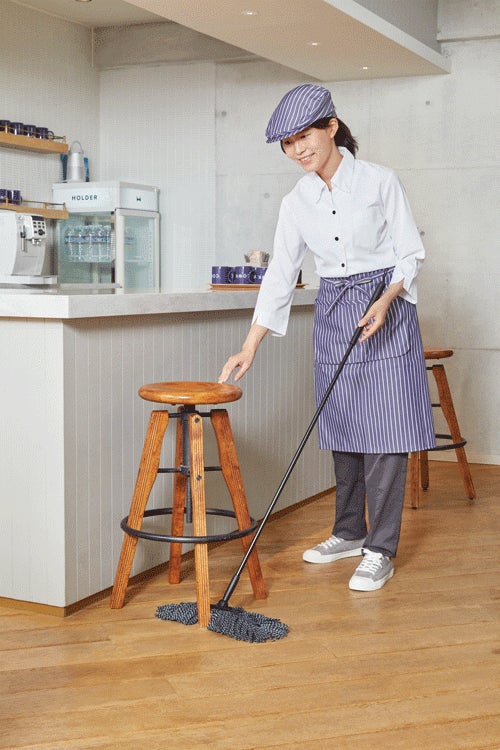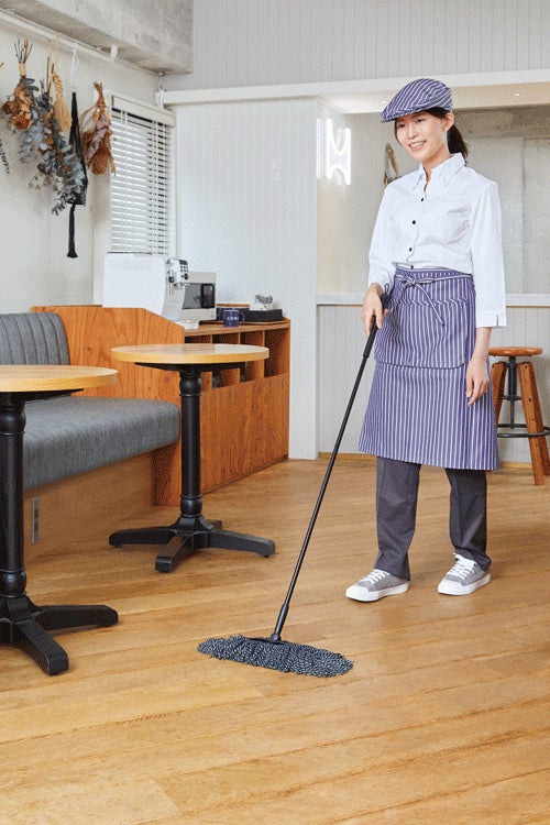 小さなお店で大活躍!コンパクトさとデザイン性を兼ね備えた機能性モップで気づいた時にサッとお掃除を。業務用小型床用モップ『サニモップリプレ』レンタル開始