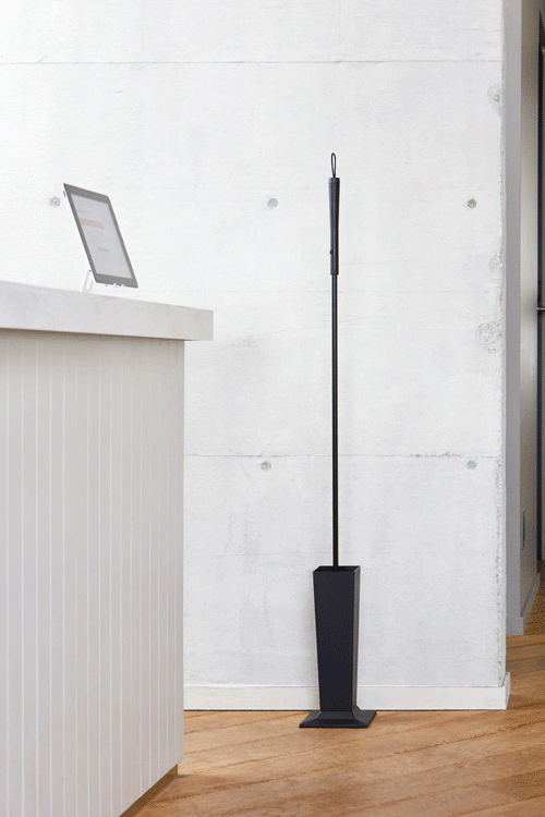 ブラックカラーを主体とし、店舗や事務所内の目立つ場所に置いても違和感の少ないデザインです。店舗イメージを壊したくないおしゃれな店舗内への設置も実現できます。