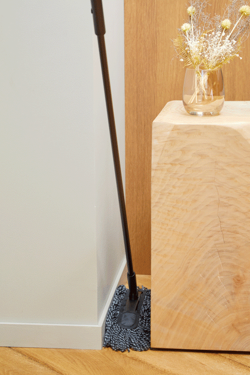 狭い空間やすき間でも使いやすいコンパクトなモップです。総重量も約293gと軽いため、片手で手軽にお掃除が可能。机や椅子を片手で動かしながらササっとお掃除することができます。