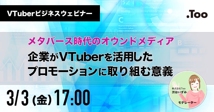 クリエイティブ市場の総合商社・株式会社Too(本社/東京都港区虎ノ門3-4-7、社長/石井剛太)は、2023年3月3日(金)にオンラインLIVE配信セミナー「企業がVTuberを活用したプロモーションに取り組む意義」を開催します。