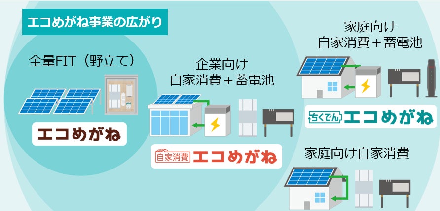 自家消費熱の高まりを捉え「自家消費エコめがね」を販売開始 また、蓄電池も設置した太陽光発電設備向けに蓄電池を最適にコントロールできる「ちくでんエコめがね」を販売開始 |