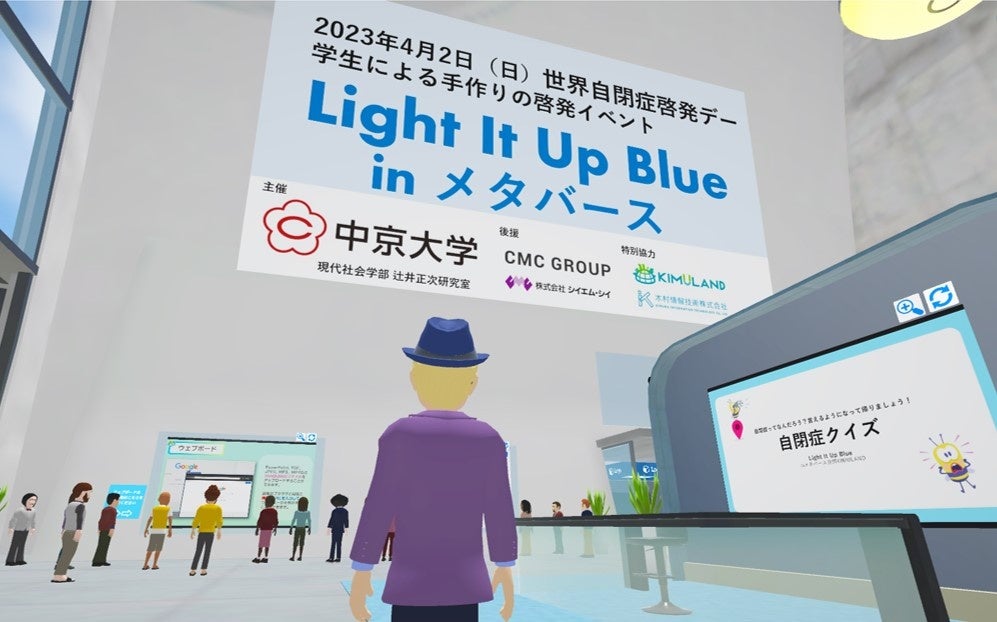 このたび、CMC GROUP、中京大学、愛知県、岡崎市、大府市が行う自閉症啓発を目的としたメタバース活用イベントに、木村情報技術は社会貢献の一環として、自社オリジナルのメタバース空間「KIMULAND(キムランド)」を提供します。