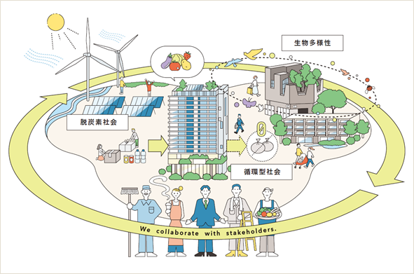 当社は、東急不動産ホールディングスグループのサステナビリティビジョンのもと、事業活動を通じた積極的な課題解決を推進しています。特に環境課題においては、再生可能エネルギー事業に取り組み、自社の国内保有施設電力の再生可能エネルギーへの切り替えや、建物緑化による都市の環境負荷軽減、エコツーリズムを通した生物多様性保全の取り組みなど、これまでも各事業において「脱炭素社会」「循環型社会」「生物多様性」の3つの観点で様々な活動を行っており、グループの長期ビジョンにおいても環境経営は重点課題のひとつです。