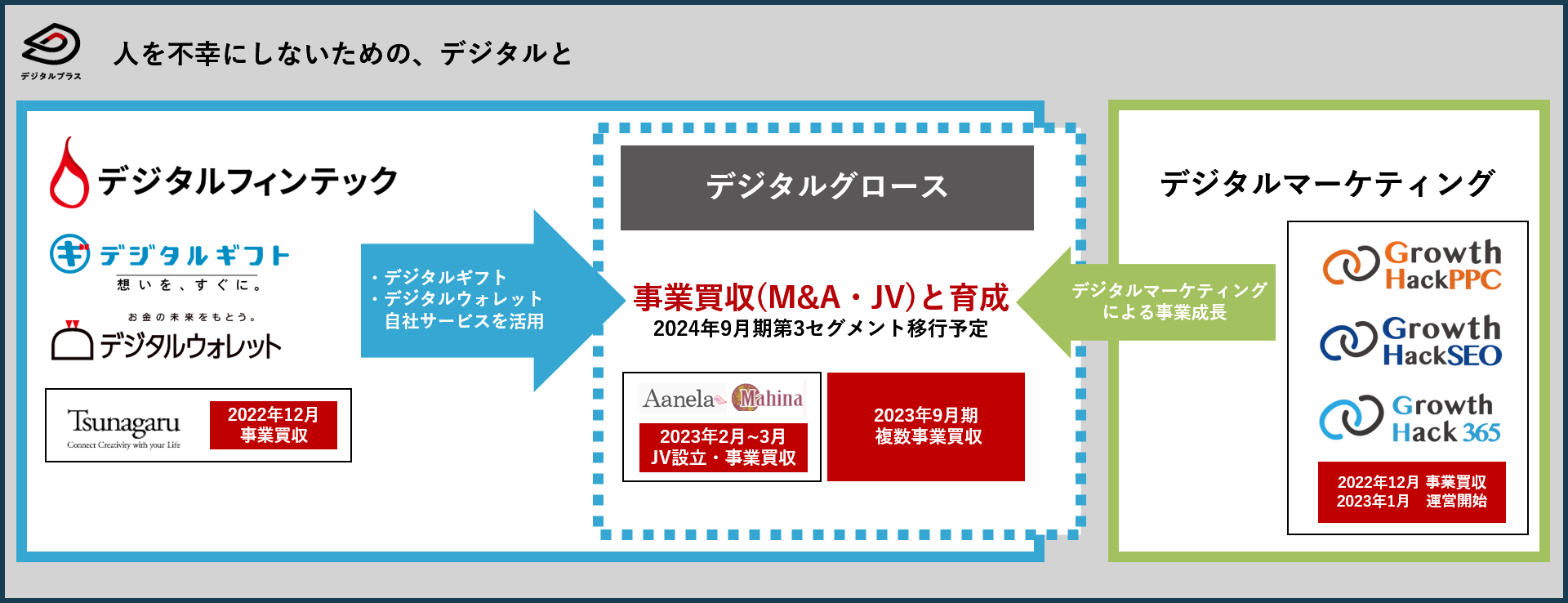 ~安定収益を生み出し、当社とのシナジーを最大限に活用できる事業を今後も買収。デジタルグロースとして新セグメント化を目指す~