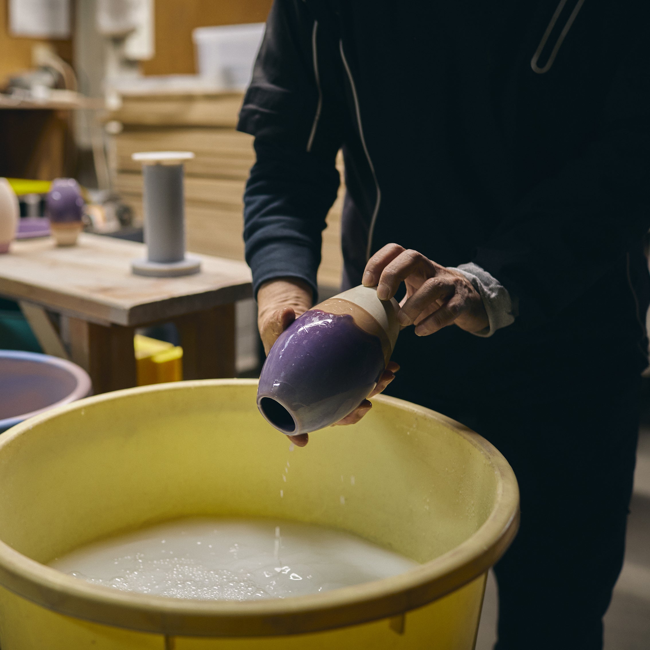 オープニング記念として、瀬戸焼の窯元にひとつひとつ丁寧に作陶していただいた、オリジナルフラワーベースを販売します。まるで水彩画のような 絶妙な配色と優美なフォルム、貫入が美しい逸品です。