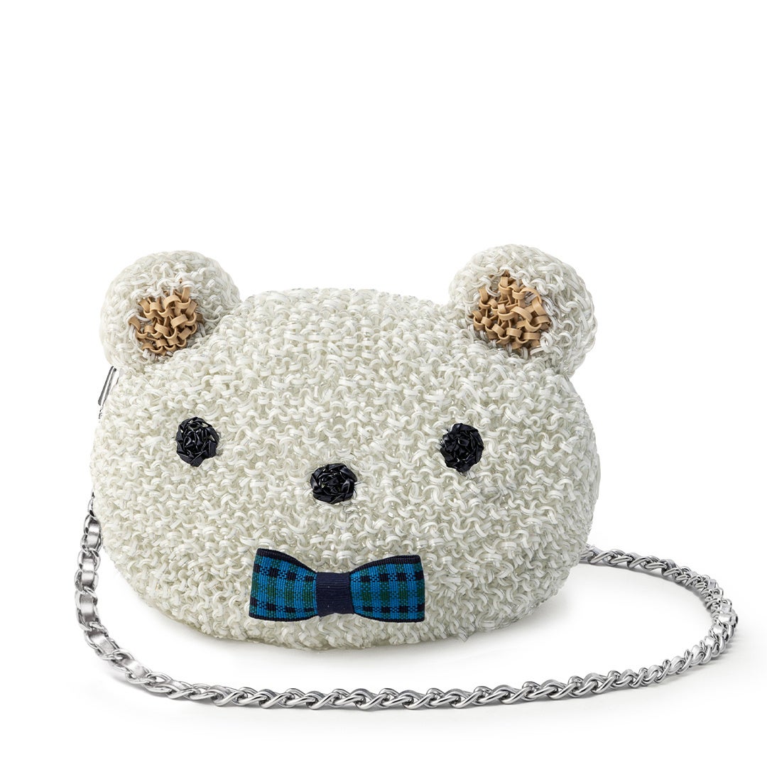 ファミリアのアイコニックなクマちゃんのデザインを落とし込んだショルダーバッグ。取り外し可能なファミリアチェックのリボンピンもポイントです。手編みのワイヤーバッグだからこそ、アクセサリー感覚で大人の女性がおしゃれに持てるアニマルモチーフに仕上がりました。一目でわかるモチーフながら、合わせやすい配色なので、いつものコーディネートの新鮮なアクセントになってくれます。