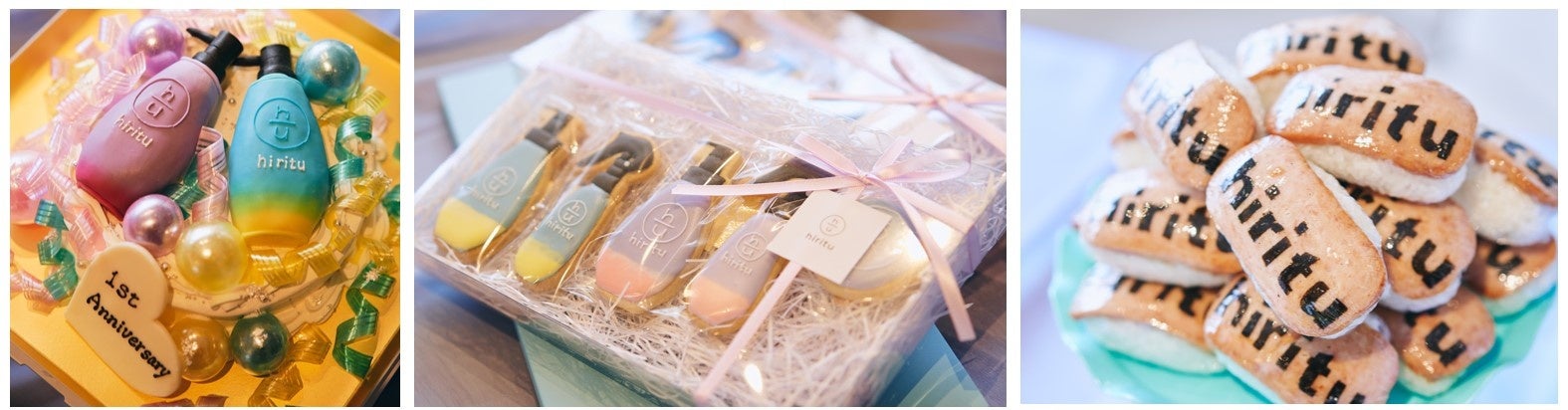 3月に迎えるブランド1周年を祝うオリジナルケーキや、商品そっくりなアイシングクッキー、hirituロゴ付きのスパムおにぎりをご用意。来場者からは「可愛い」「食べるのがもったいない」などの声があがりました。