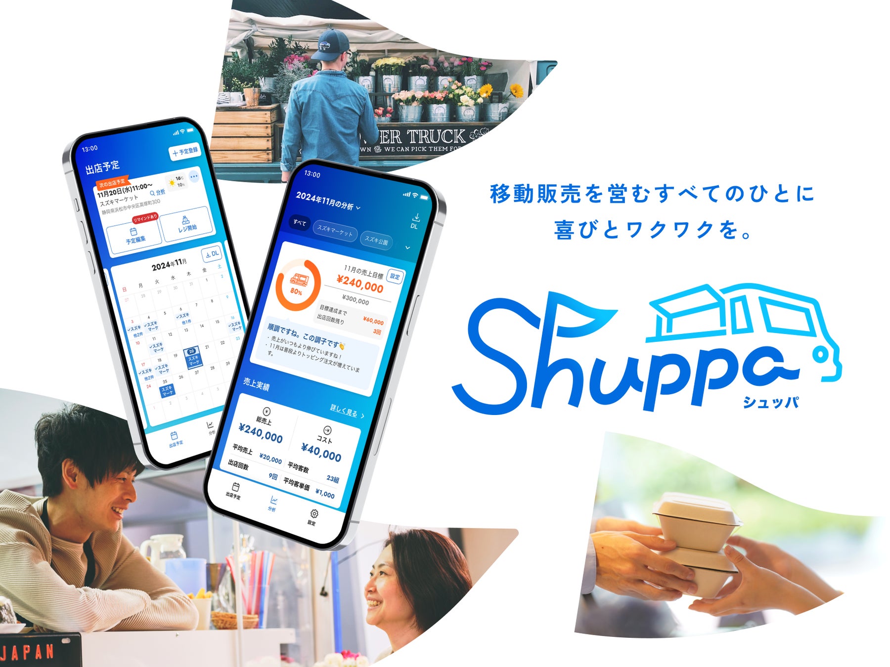 Shuppa(シュッパ)は、スマートフォンひとつで移動販売事業者をサポートするサービスです。日々の出店計画から商品の登録・管理、レジ対応等の業務、さらにはWEBサイト作成といった集客に関する業務から売上の分析まで、移動販売における「手の回りにくい業務や効率化しにくい業務」を、日々使用するスマートフォンで実現します。単独営業時においても手間のかからない、直感的なUI/UXを実現したことで、忙しい事業者の日常に溶け込みながら、業務効率化と売上改善をサポートします。