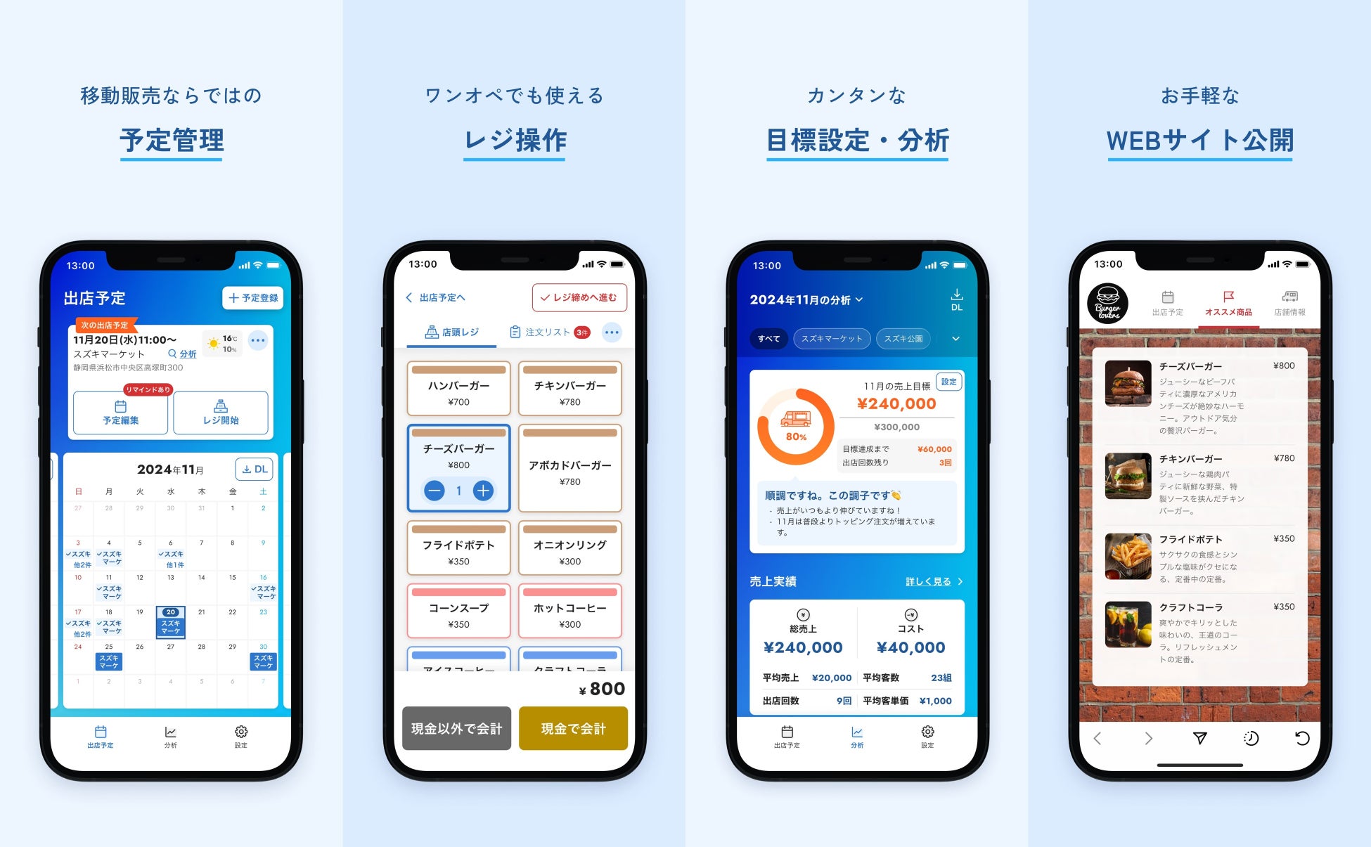 スマートフォンアプリで移動販売の飲食・物販売店の運営を包括的にサポート