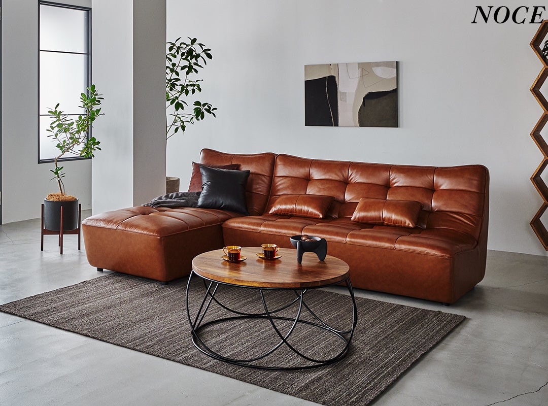 また本革ソファがもつ豊かな風合いと高級感は、インテリアに格別な存在感を放ちます。丸いコーヒーテーブルはその柔らかいフォルムで、ソファのリラックス感を引き立てつつ、ブラックスチールの脚がモダンなアクセントを加えています。この絶妙な組み合わせが、居心地の良い空間を演出し、家で過ごす時間をより豊かなものに変えてくれるのです。機能的で美しい、カウチソファと丸いコーヒーテーブル。両者の相乗効果で、日々の生活に洗練された快適さをもたらしてくれるでしょう。