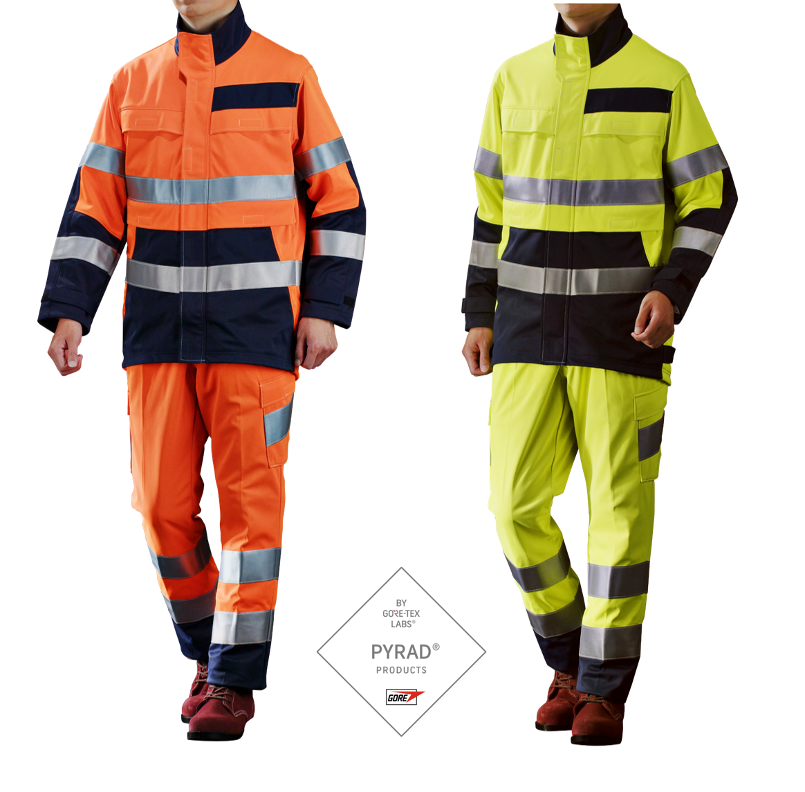 この度素材として採用した、日本ゴアの「PYRAD® ファブリクス by GORE-TEX LABS®」は、軽量性と高い防護性能を両立した革新的素材です。素材に組み込まれた難燃性能は製品寿命まで劣化することなく、 EN IEC61482-2:2020など複数の国際規格に適合しながら、驚異的な軽さと透湿性を実現しています。