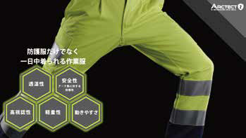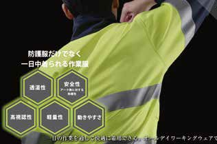 また、防護性に関してはアークフラッシュ防護服の防御度について規定するIEC61482-1-2において最高クラスであるAPC(Arc Protective Class)2を達成しつつ、熱及び火炎に対する防護服、溶接及び関連作業用防護服、および高視認性安全服としての性能を併せ持つことで作業現場における様々なリスクから作業者を守ります。
