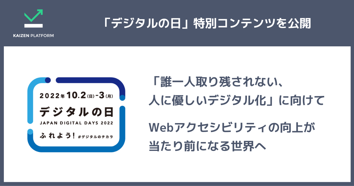 KaizenPlatform、「デジタルの日」に賛同し、誰一人取り残さないデジタル社会の実現に向けてWebアクセシビリティ向上を支援