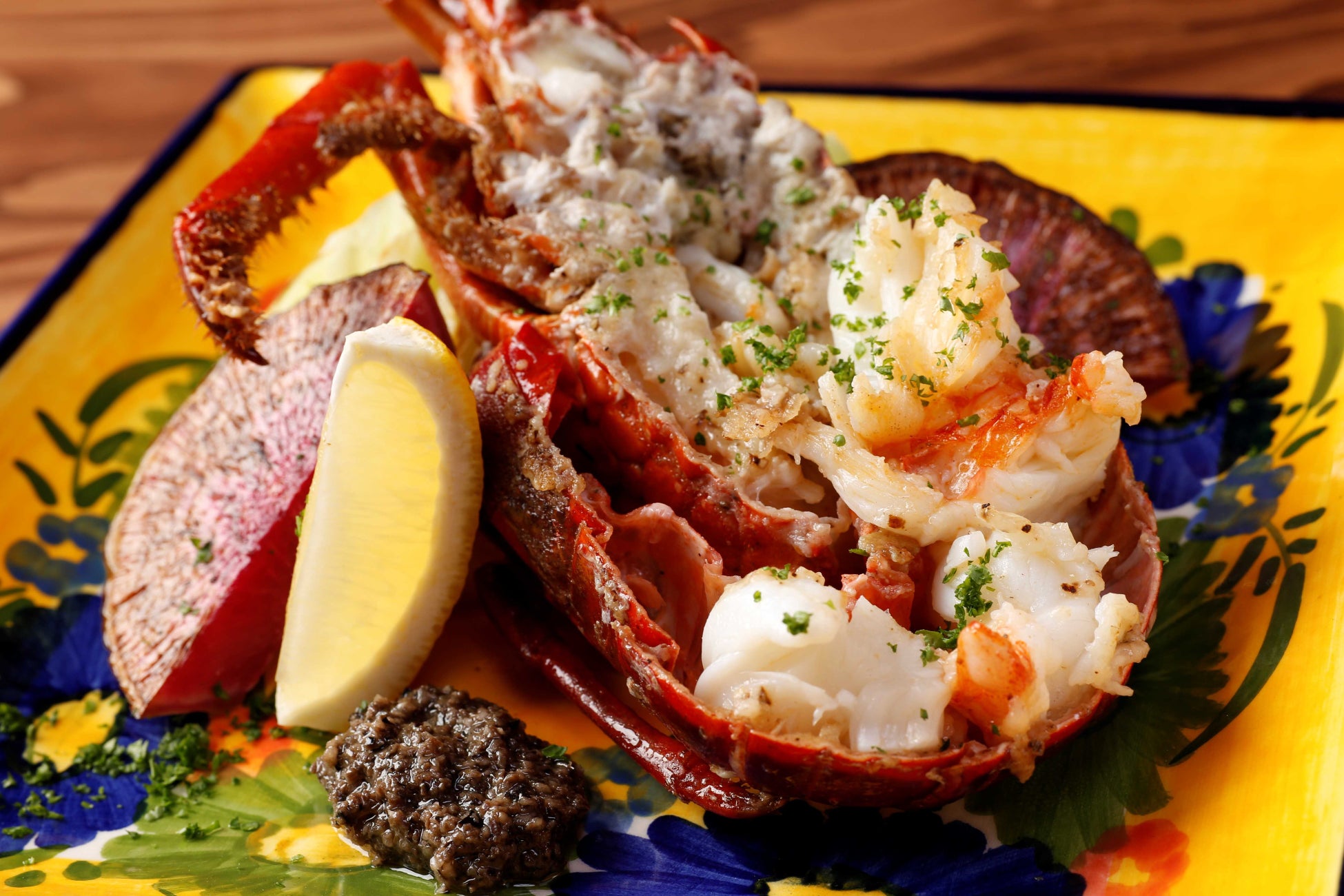 コース料理では、伊勢海老やタラバガニ、神戸牛サーロインやフィレの鉄板焼きがメインを彩ります。