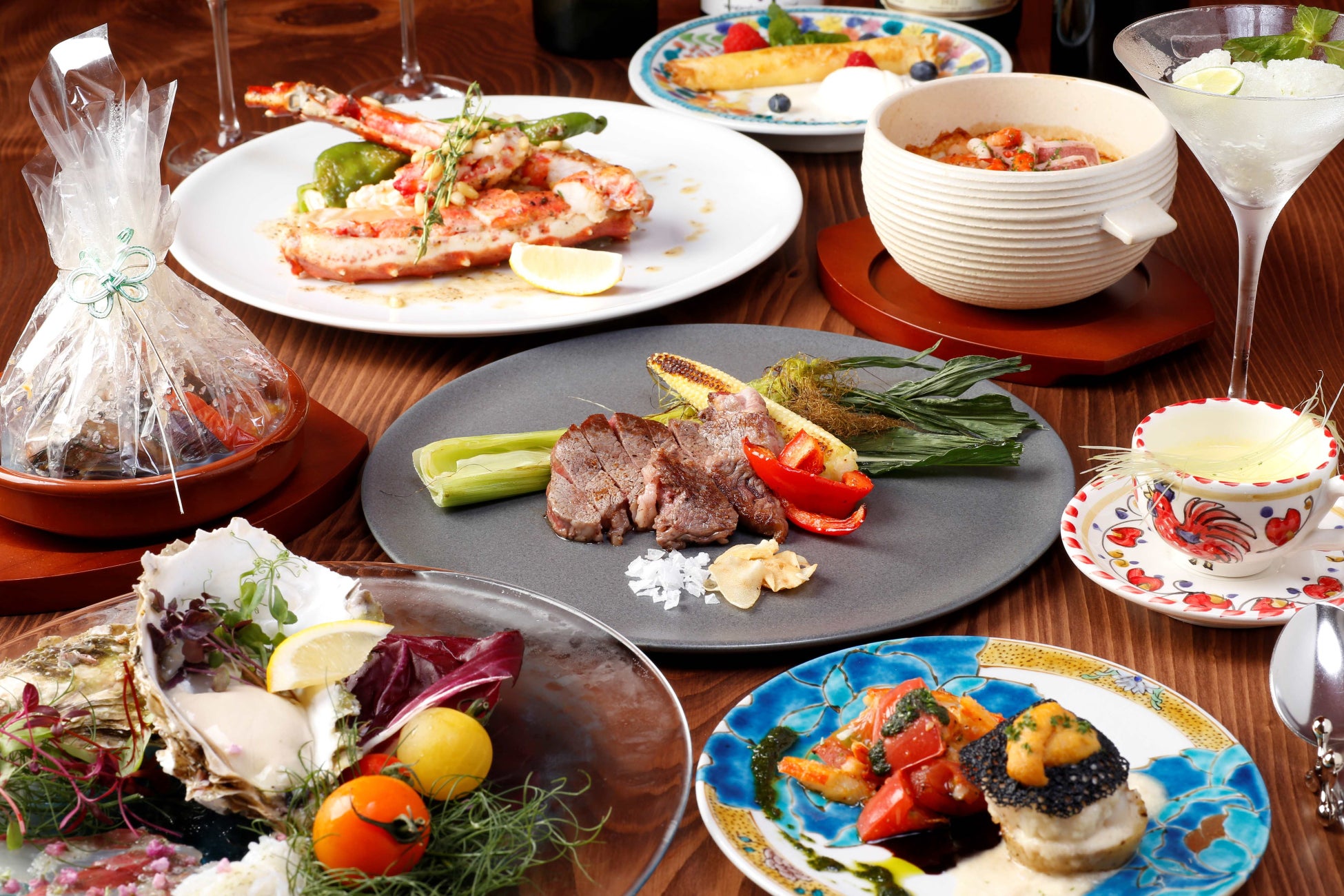 シェフが目の前でダイナミックに焼いたり、カットする様子を間近で見ながら、立ち上る香りとともに旬の食材豊かな味わいをご堪能ください。