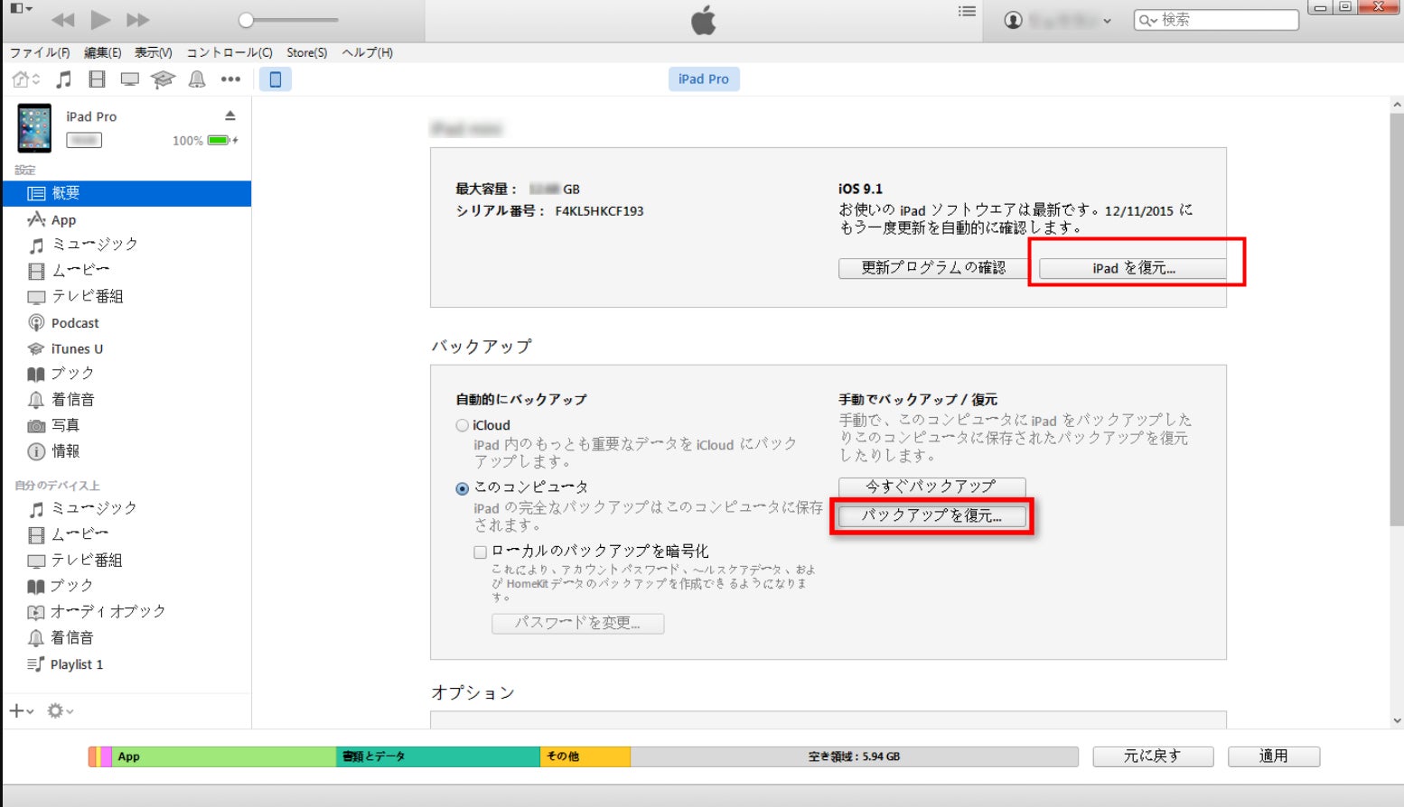- 方法2:iTunesでiPadを初期化する