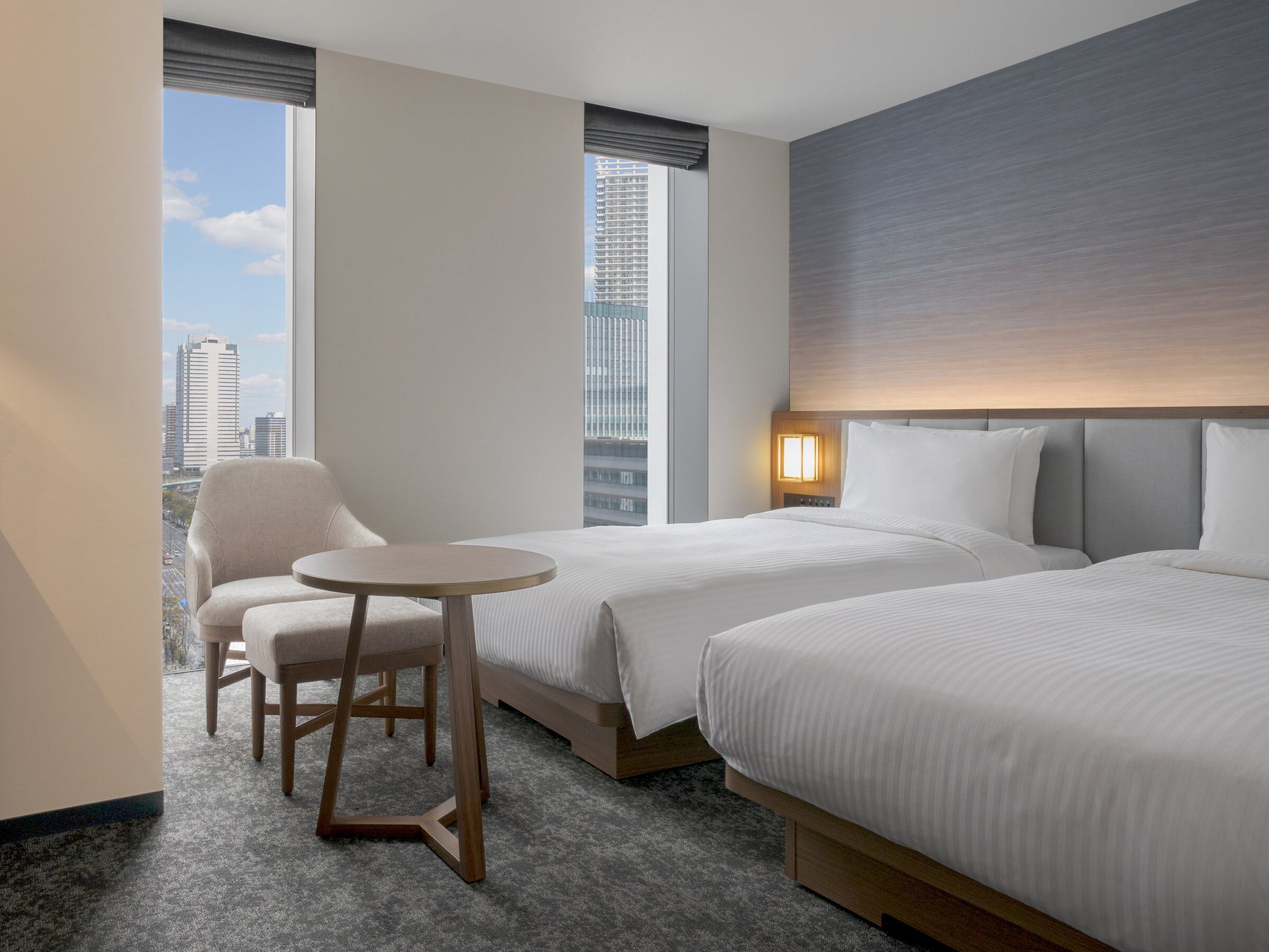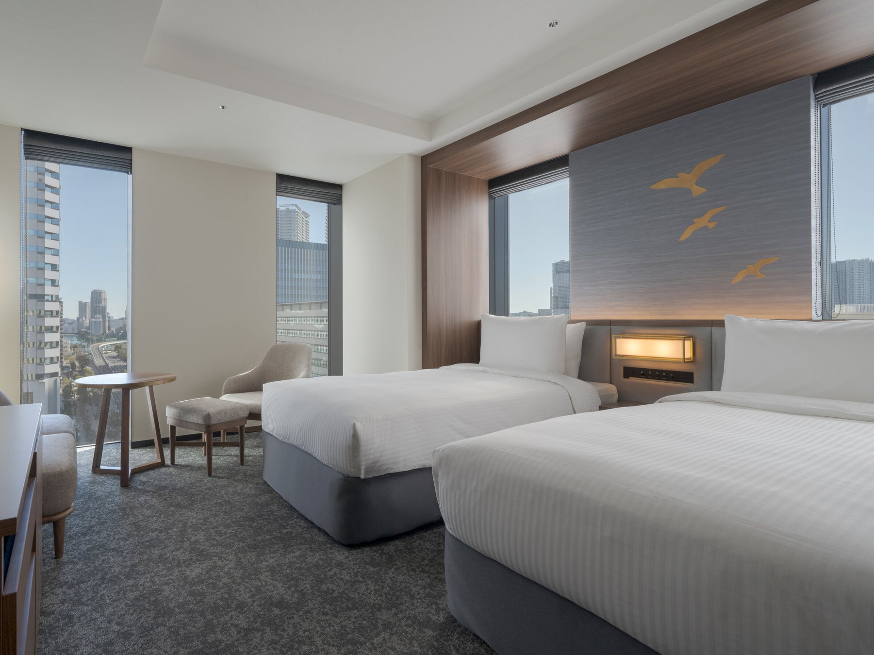 東京のベイエリアらしい爽やかなブルーを用いた全135室のお部屋は4~12階に位置。全室にキャスト機能付TV、個別空調、加湿空気清浄機やカプセル式コーヒーマシンを完備するなど最新の快適さと充実した設備を備え、滞在中にお客様が心地よくリラックスできる環境を提供いたします。また、ベッドは全室シモンズベッドを導入し、旅先でも自宅のように寛ぎ、旅の疲れを癒していただけます。