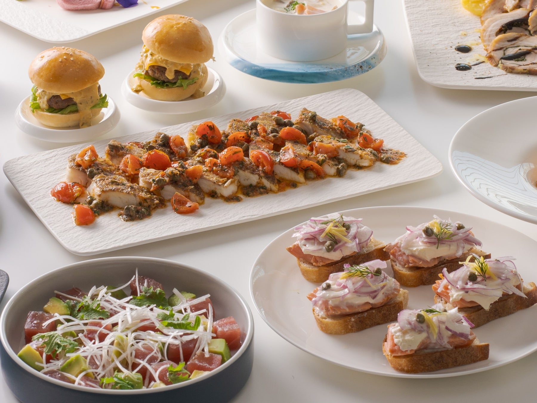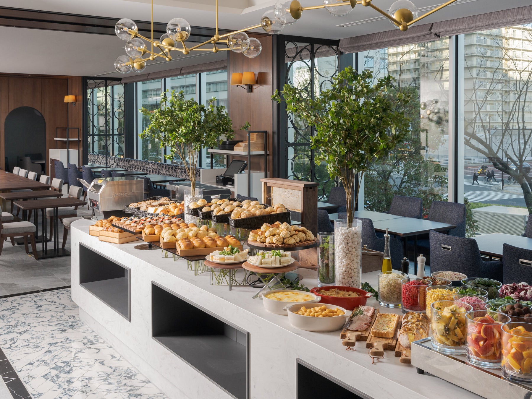 朝食では、新鮮な野菜とフルーツを使ったスムージーや多彩なサラダのほか、ライブキッチンで提供するクロックムッシュやエッグベネディクト、焼き上がりを見るのが楽しいミニパンケーキなどのメニューをご用意。ランチタイムには、ホテル自家製の生麺を使用した日替わりパスタもご提供。ホテルレストランならではの本格的な味わいを、ビュッフェレストランでお好きなだけお楽しみください。