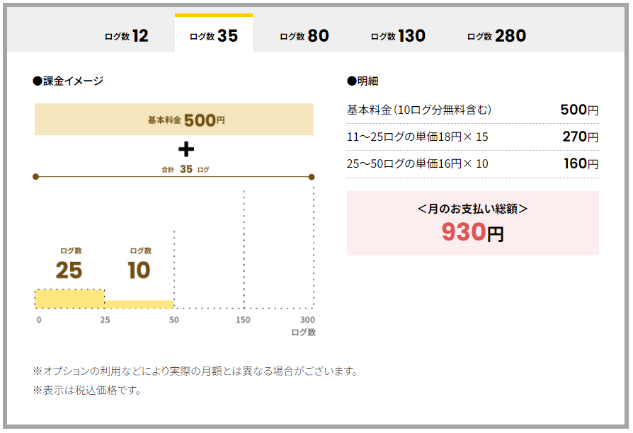 各レンジのログ数を消化していく度にログ単価は安くなります。