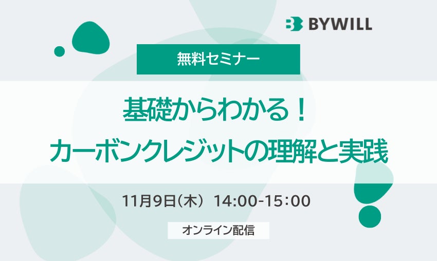 【いま注目のカーボンクレジット】無料セミナー「基礎からわかる!カーボンクレジットの理解と実践」を11月9日(木)に開催