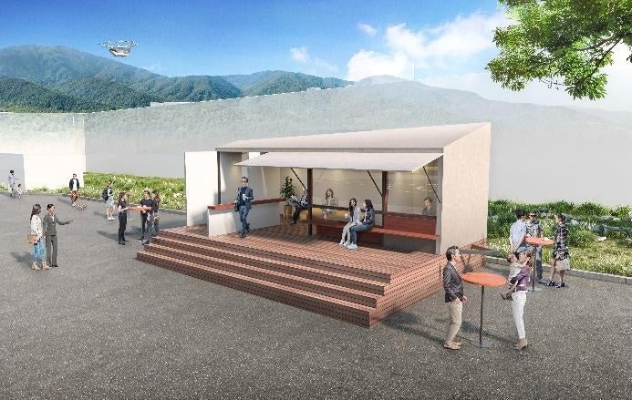 YADOKARI、空飛ぶクルマの離着陸場「御殿場プレミアム・アウトレット バーティポート」の核となる日本初のトレーラーハウス型施設を製作