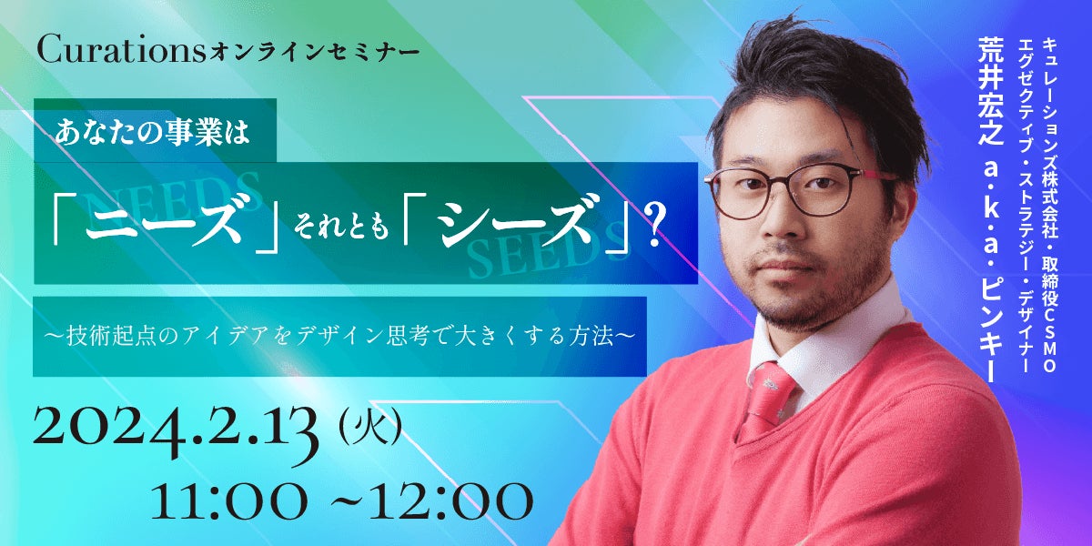 【2月13日(火)11:00~ 無料オンラインセミナー】あなたの事業は「ニーズ」それとも「シーズ」?〜技術起点のアイデアをデザイン思考で大きくする方法〜