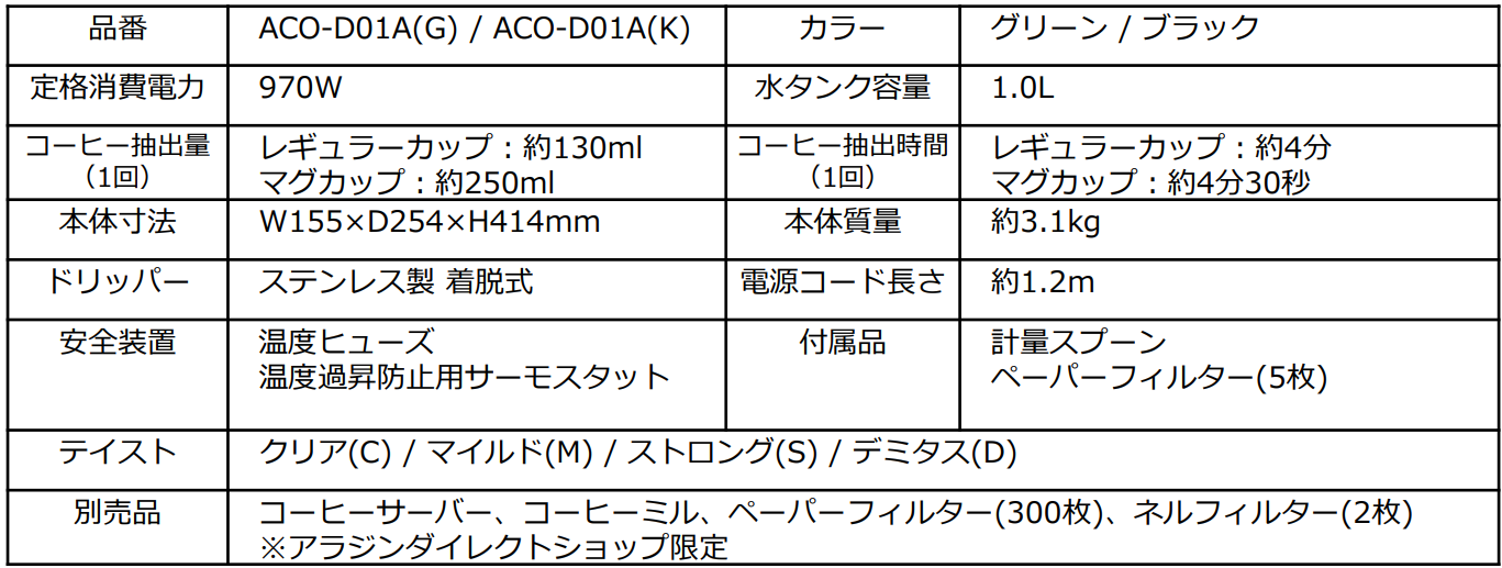 価格:オープン価格 ※店頭予想価格 37,000円前後(税込) / 付属品:計量スプーン、ペーパーフィルター(5枚)