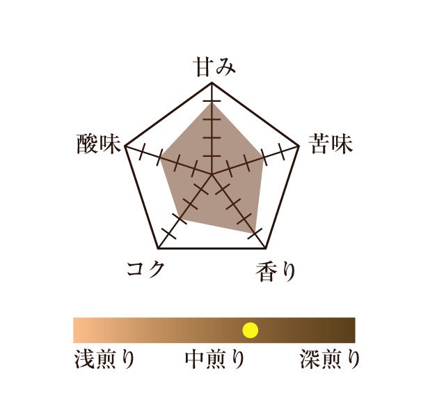 酸味、苦みを程よく感じる飲みごたえのある味わい。