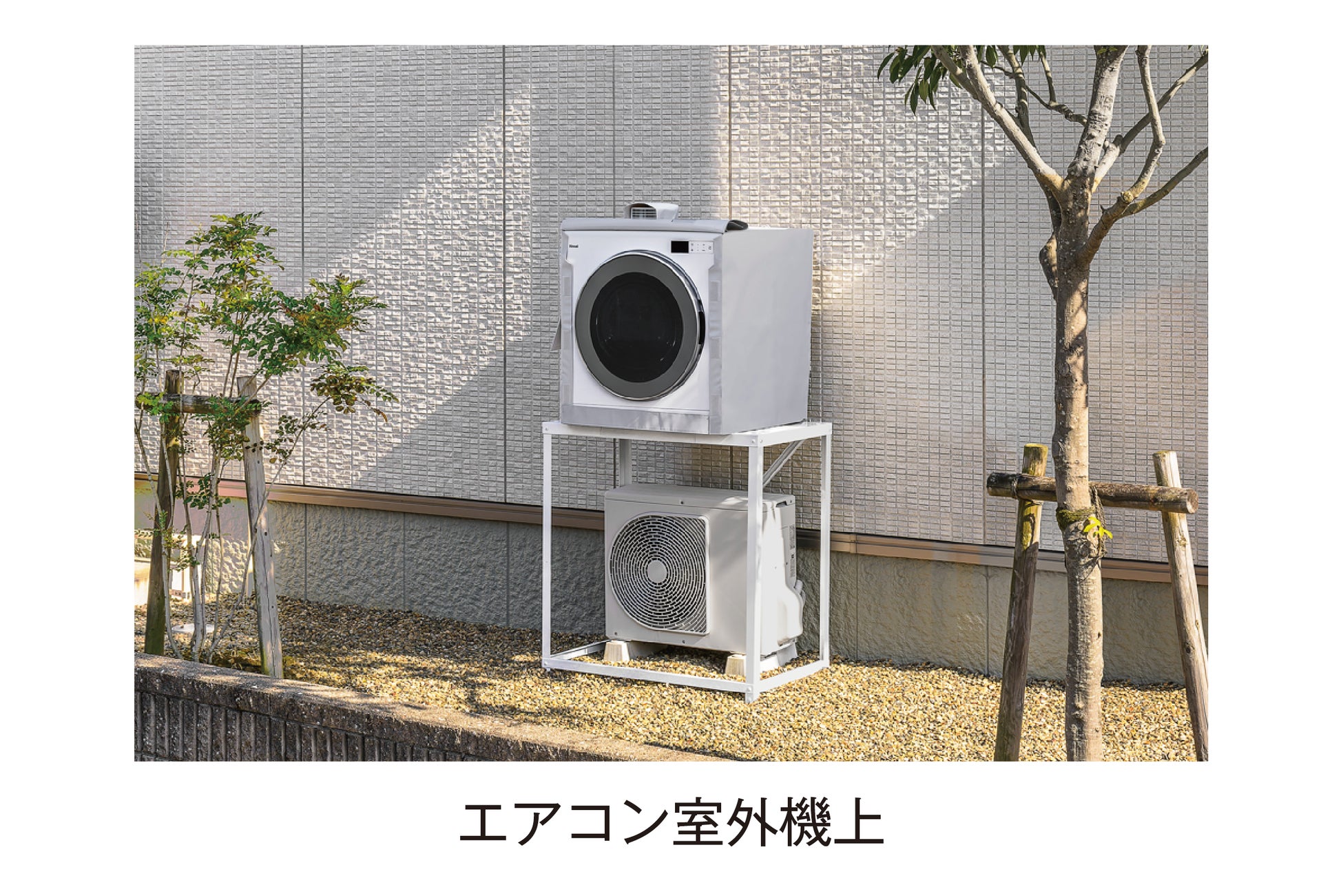 また、別売りの専用台(型式:DS-80BSF)を用いることで、エアコン室外機の上に乾太くんを縦積み設置することができます。