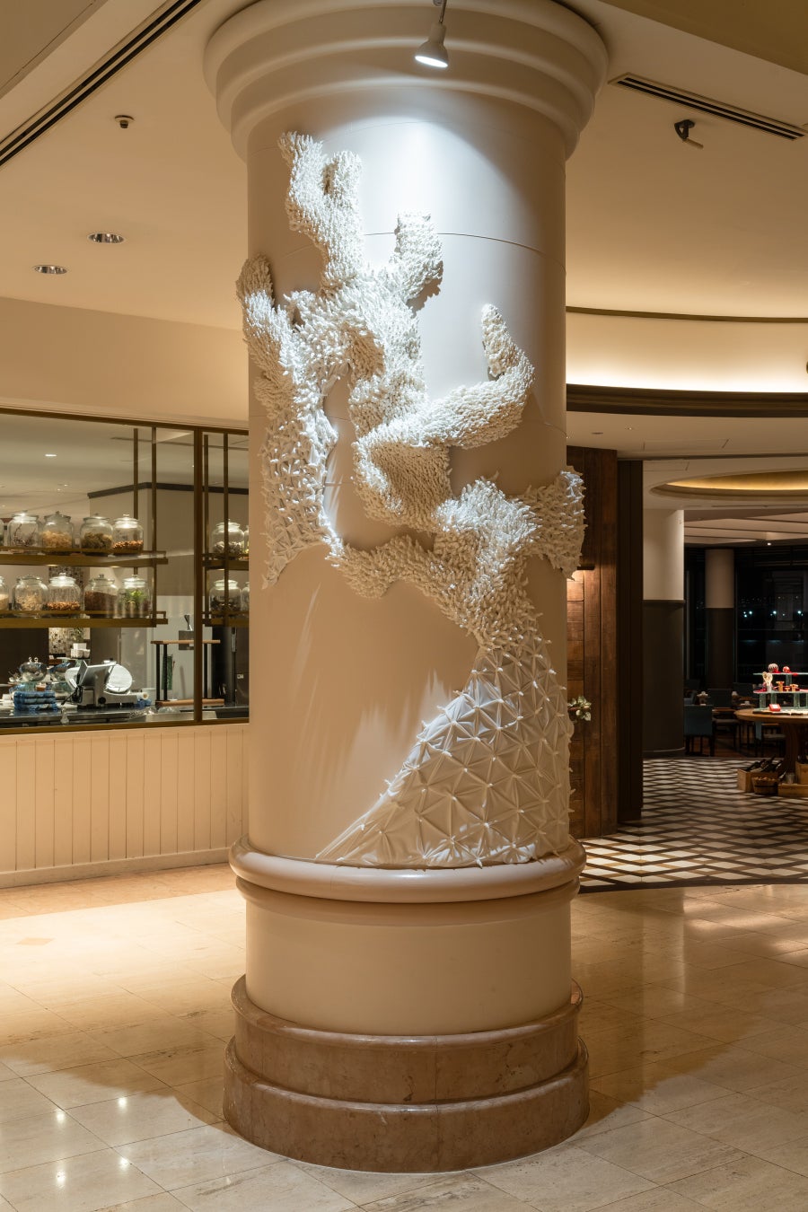 また、ロビーに隣接するセゾンアートショップでも、初の試みとして、ショップ全体を白い空間とし、ロビーと同じ技法で作られた松本氏の緻密で立体的な作品の数々を展示しています。