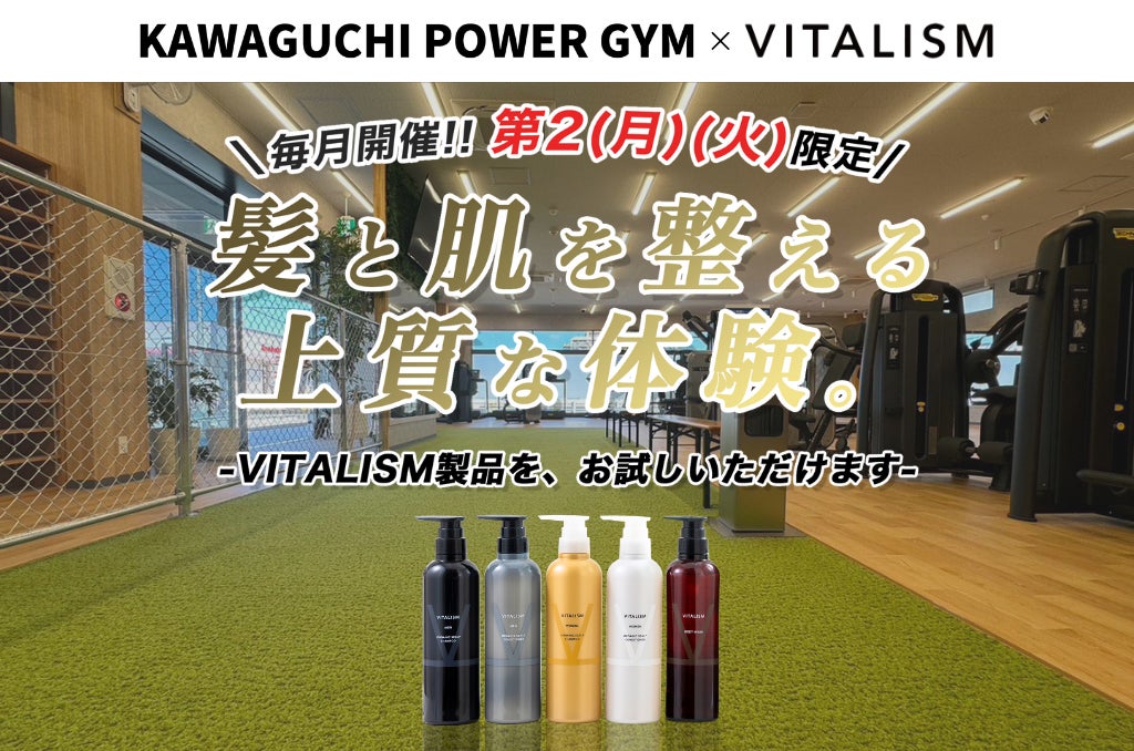 筋トレ後はスカルプケアが新常識!?毎月2日間限定でVITALISMの人気ケア製品をKAWAGUCHI POWER GYMで体験!