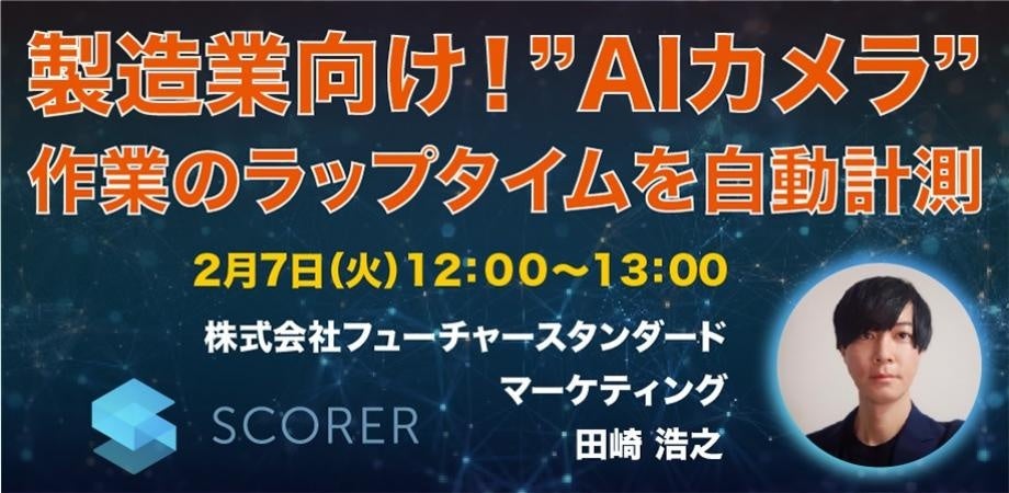 映像解析AIプラットフォーム「SCORER(スコアラー)」を運営するフューチャースタンダード(本社:東京都台東区、代表取締役:鳥海哲史 以下、フューチャースタンダード)は、2月7日(火)12時に無料ウェビナーを開催し、「AIStopwatch」を紹介いたします。
