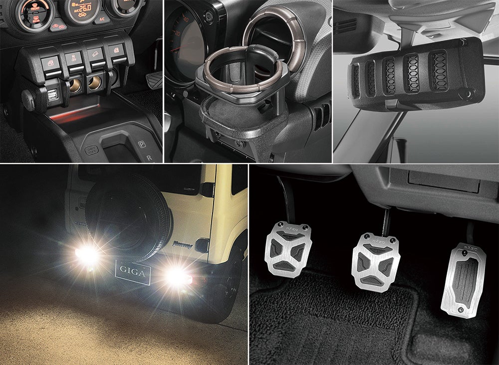1.“まるで純正”シリーズ:ジムニー専用ドリンクホルダー、増設電源ユニット、リアビューミラー&カバー、ナビ周りアクセサリー、クルマ型USBチャージャー(ジムニー/ハイゼット)