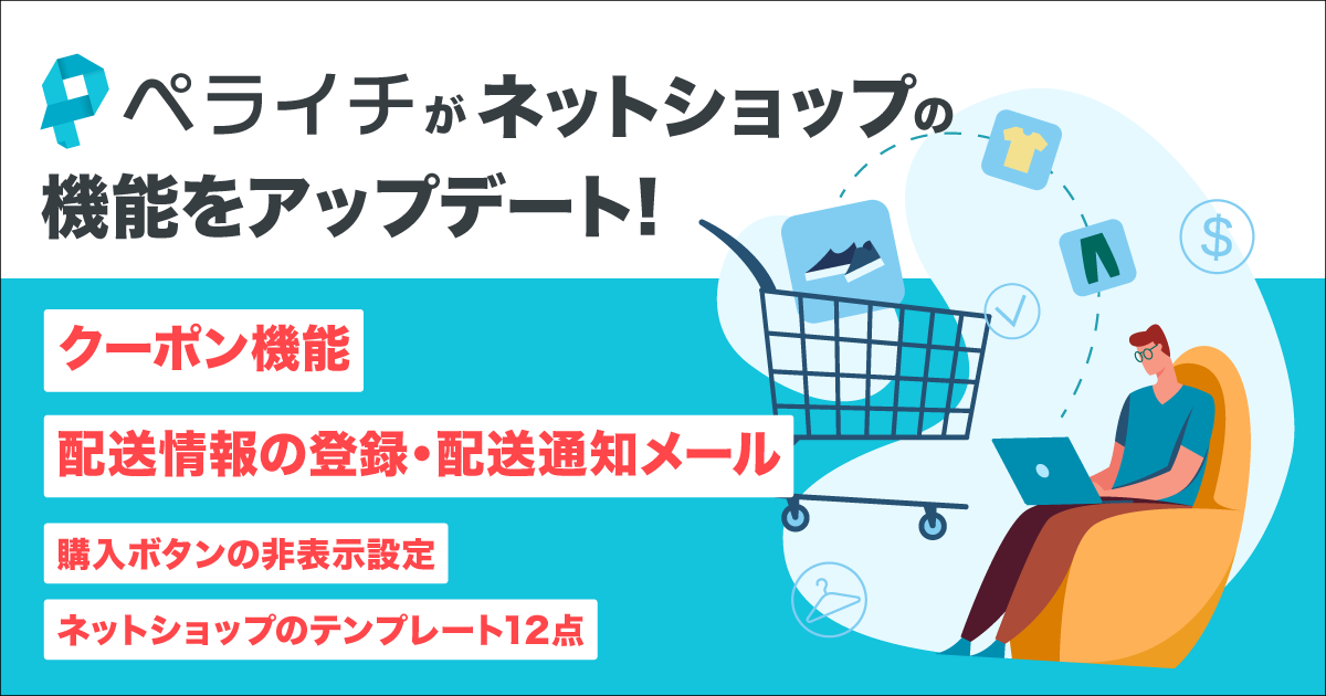 ペライチ、ネットショップ利用の促進にむけ「クーポン発行機能」と「配送情報通知機能」を新たに追加