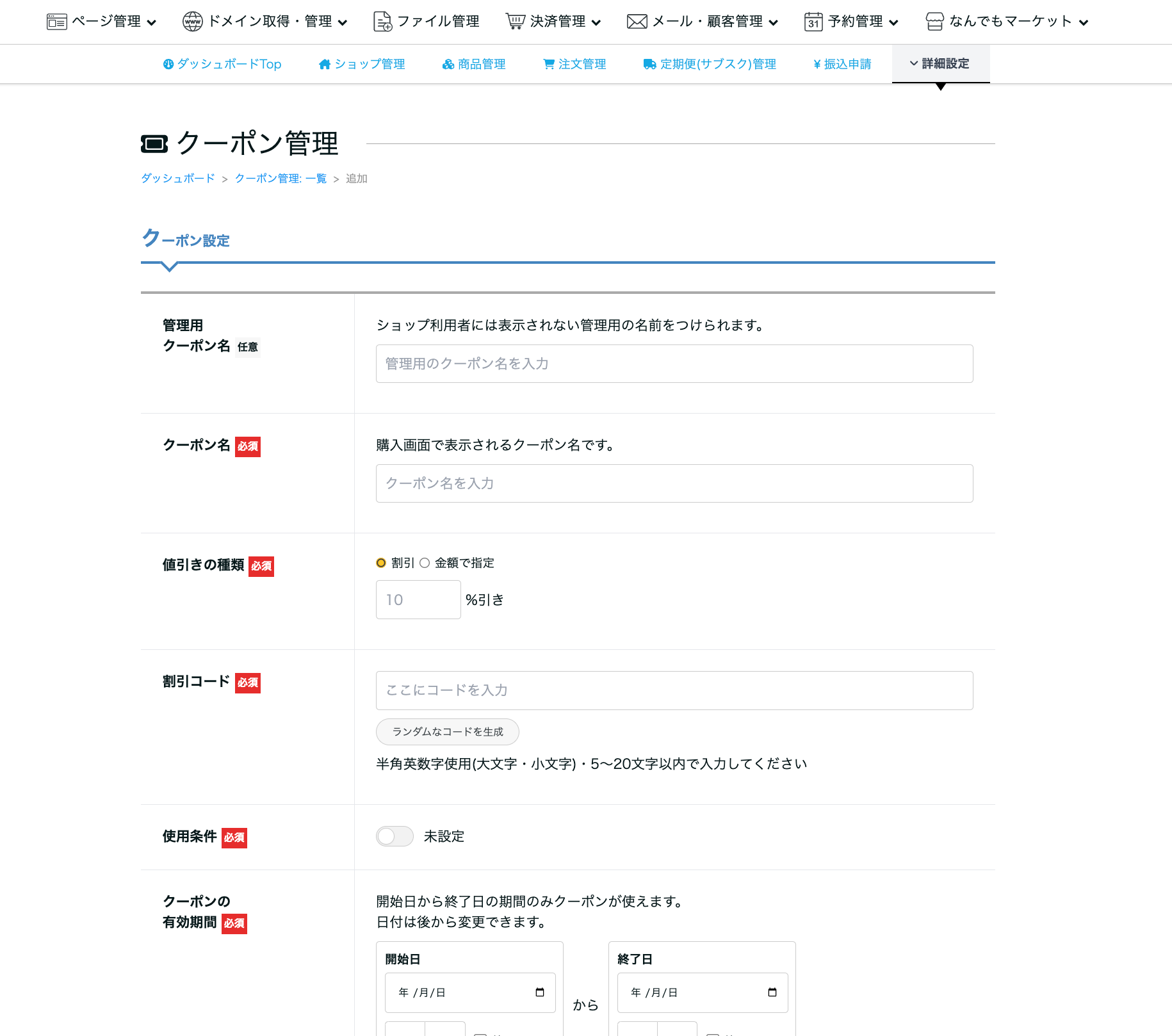 ▼クーポン作成画面